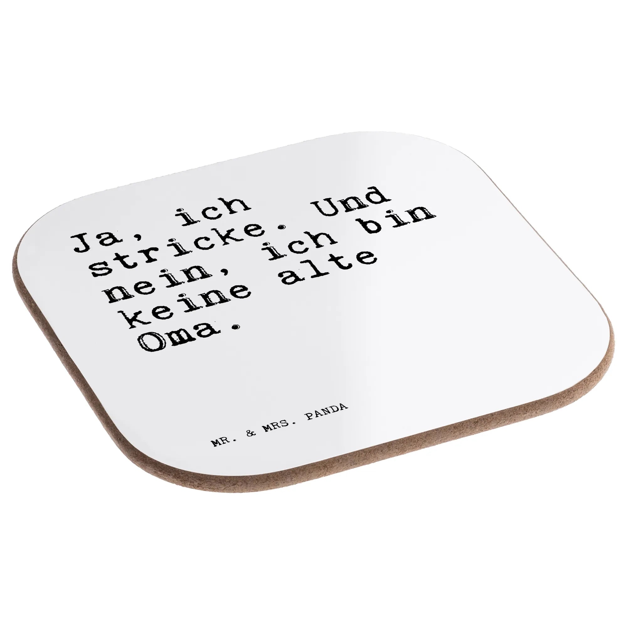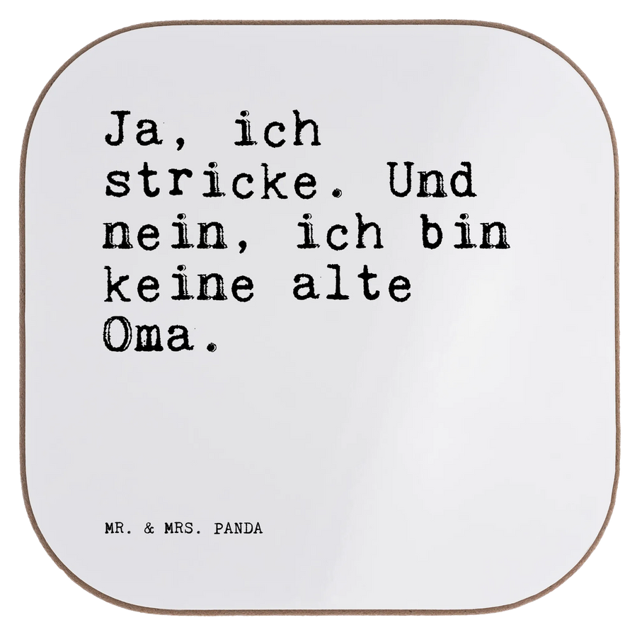 Ein liebevoller Untersetzer von Mr. & Mrs. Panda mit dem Spruch „Ja, ich stricke. Und nein, ich bin keine alte Oma.“ – ein perfektes Accessoire für alle, die Stricken und Häkeln mit Freude und Humor leben. Der quadratische Untersetzer ist ein stilvoller Glasuntersetzer, Tassenuntersetzer und Becheruntersetzer zugleich und bringt Persönlichkeit in dein Zuhause.