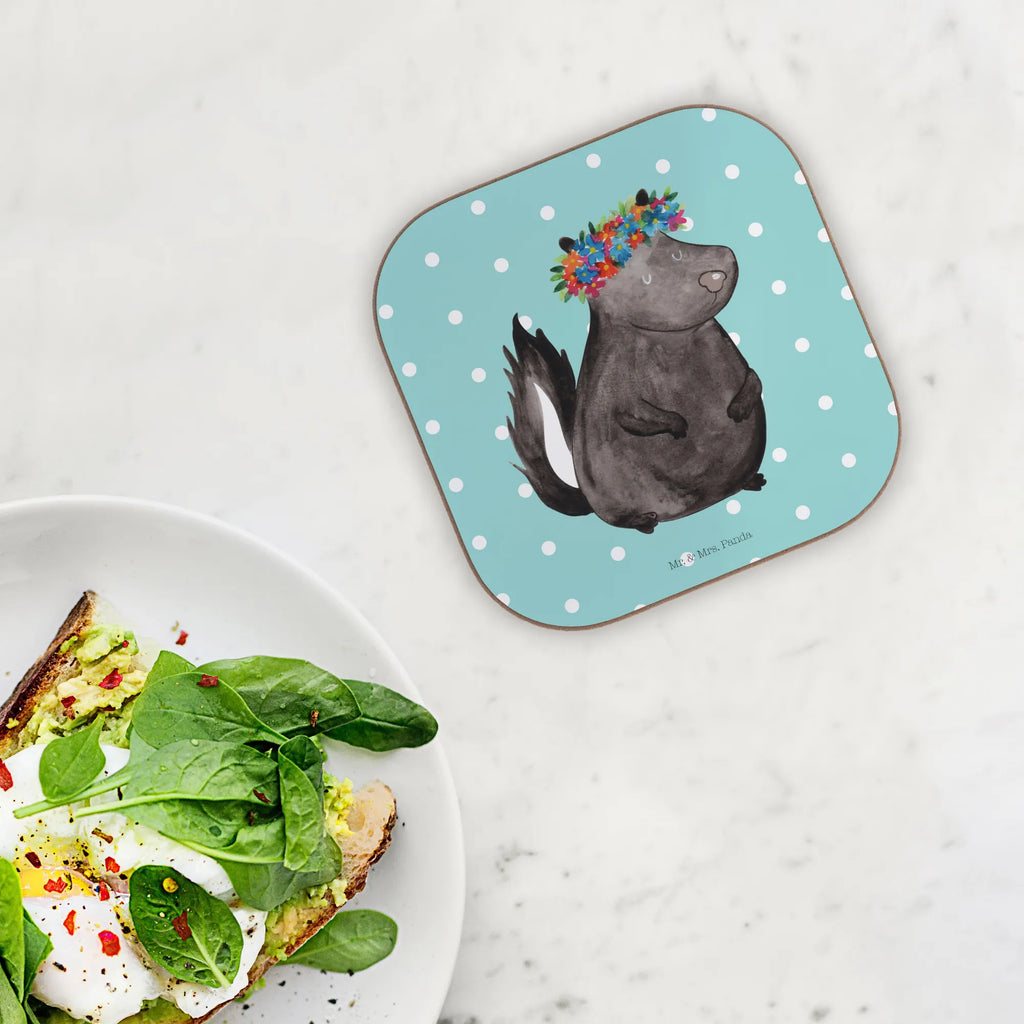 Greif zu und hole dir dein Stückchen Freude nach Hause – der Stinktier Blumenmädchen Untersetzer von Mr. & Mrs. Panda wartet schon auf dich!