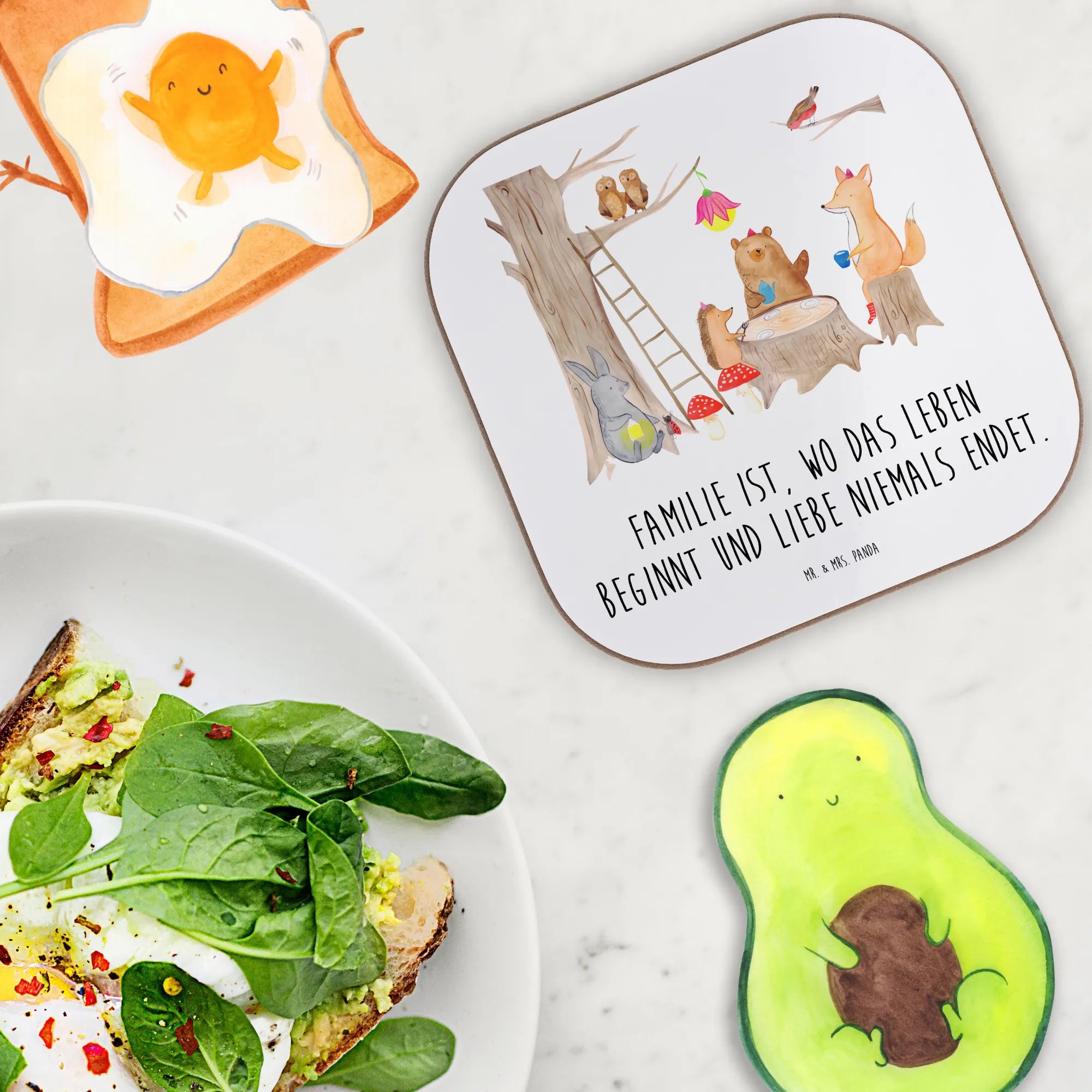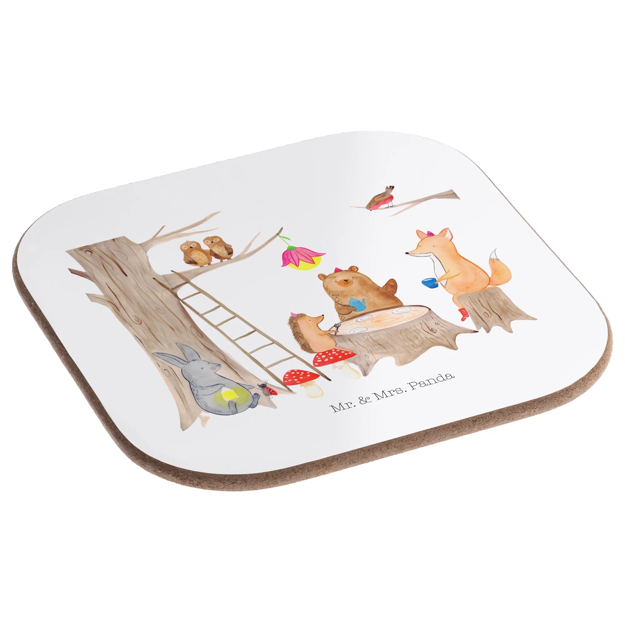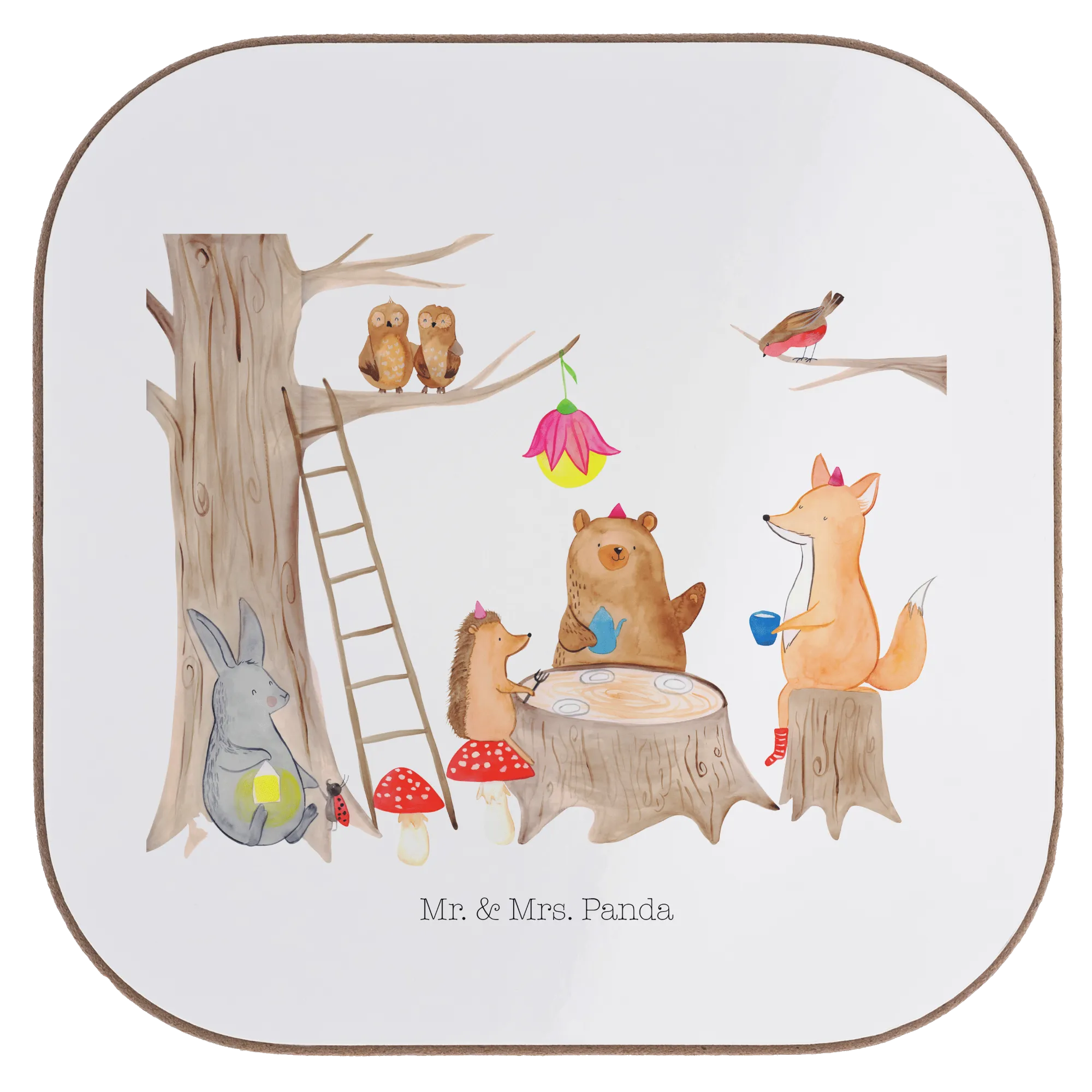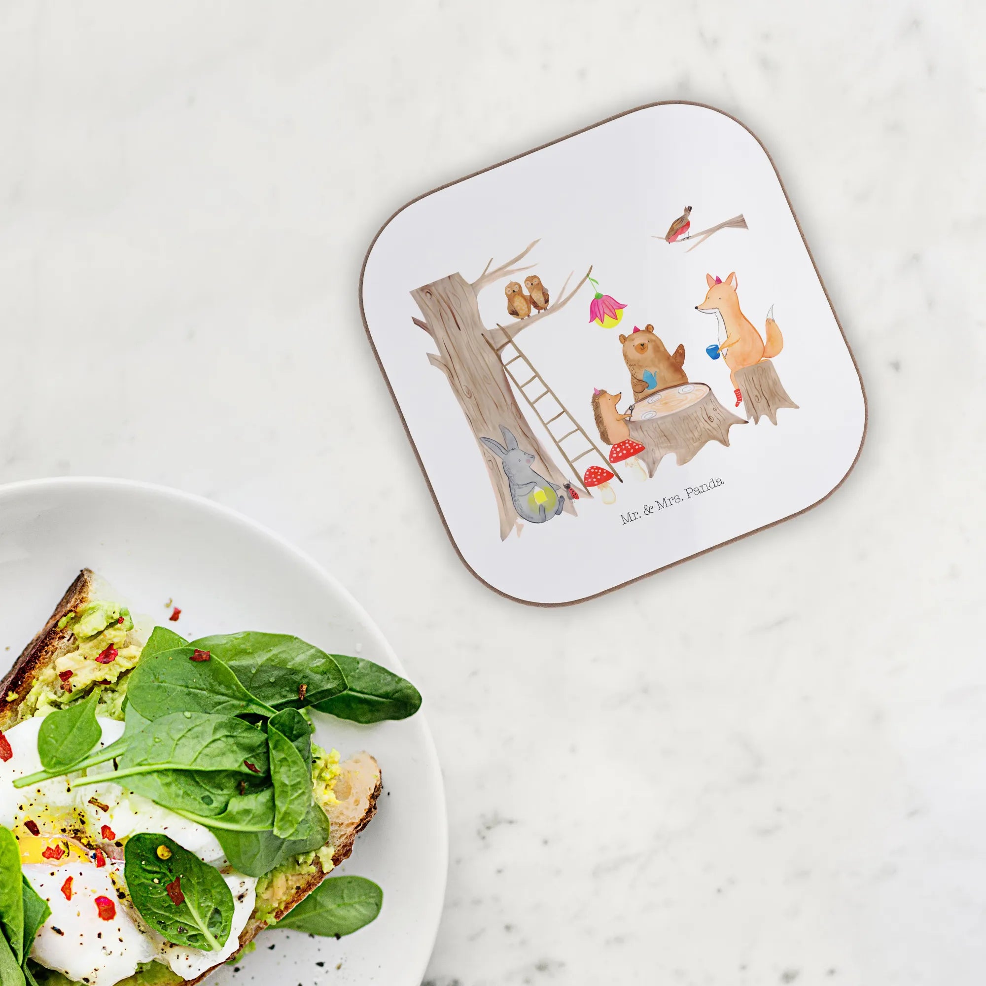 Quadratische Untersetzer Waldtiere Picknick - mit Spruch