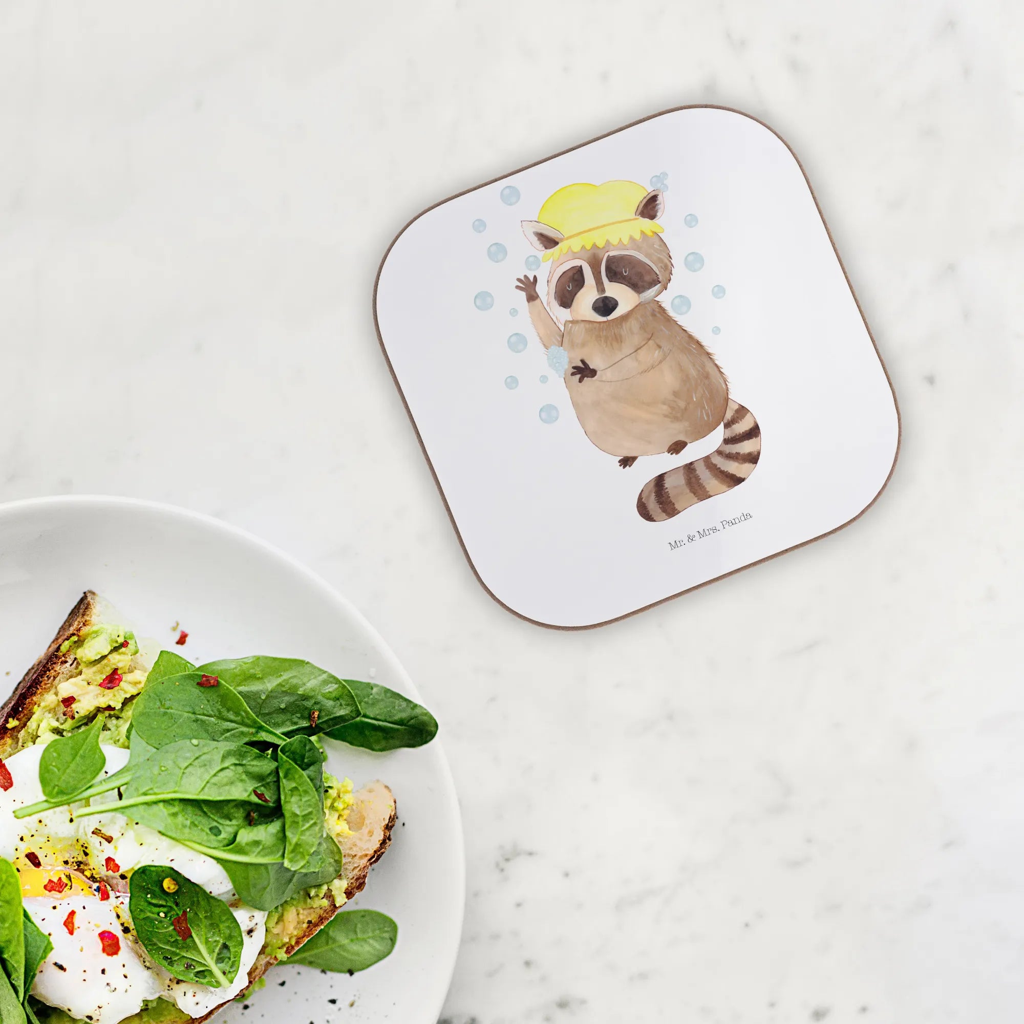 Quadratische Untersetzer Waschbär - mit Spruch - Weiß