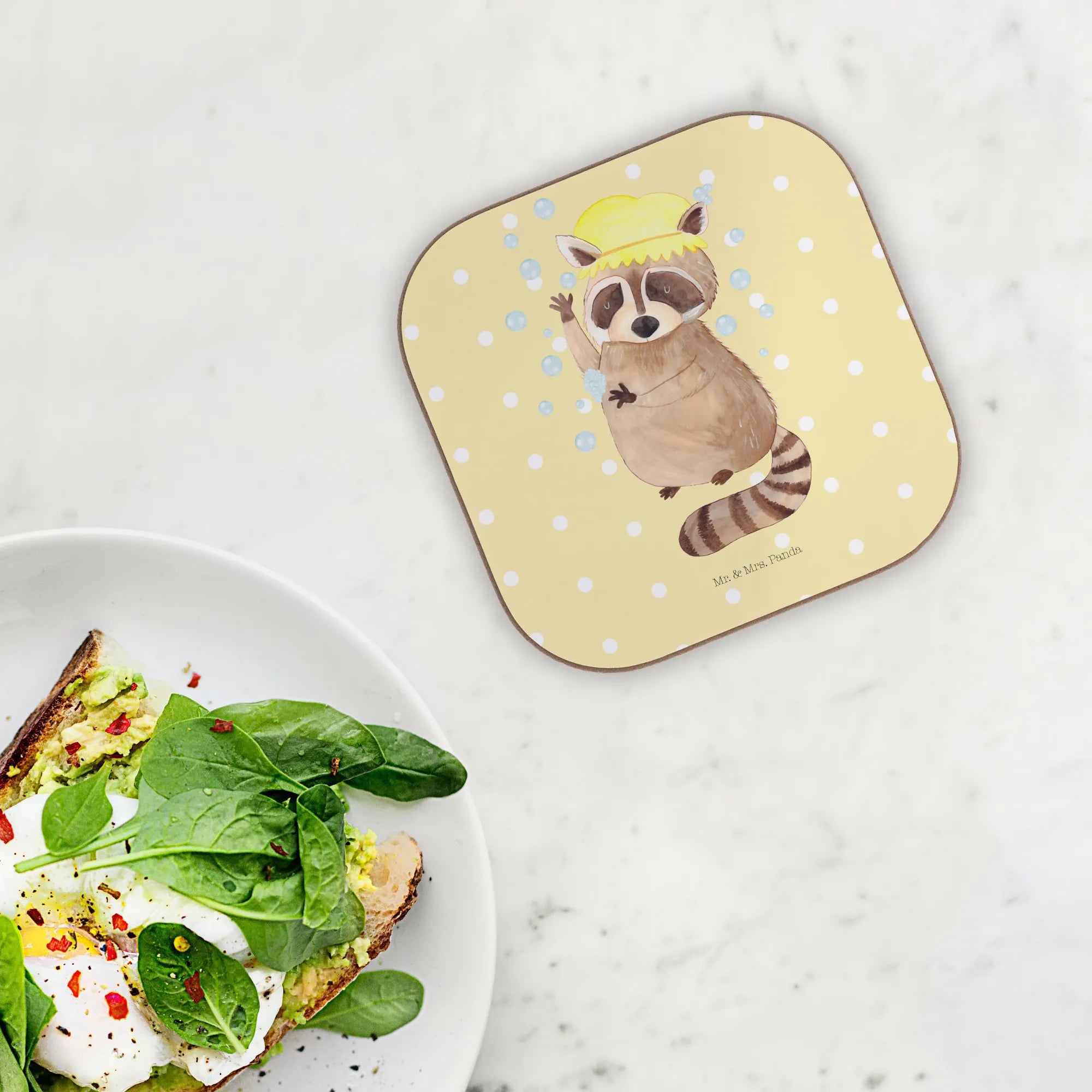 Die Small World Kollektion ist eine der ältesten Kollektionen von Mr. & Mrs. Panda und vereint eine Vielzahl von niedlichen Motiven und lebensfrohen Sprüchen. Der Untersetzer mit seinem fröhlichen Waschbär-Motiv eignet sich hervorragend als Geschenk zum Geburtstag, zum Einzug oder einfach als kleine Aufmerksamkeit für einen lieben Menschen.