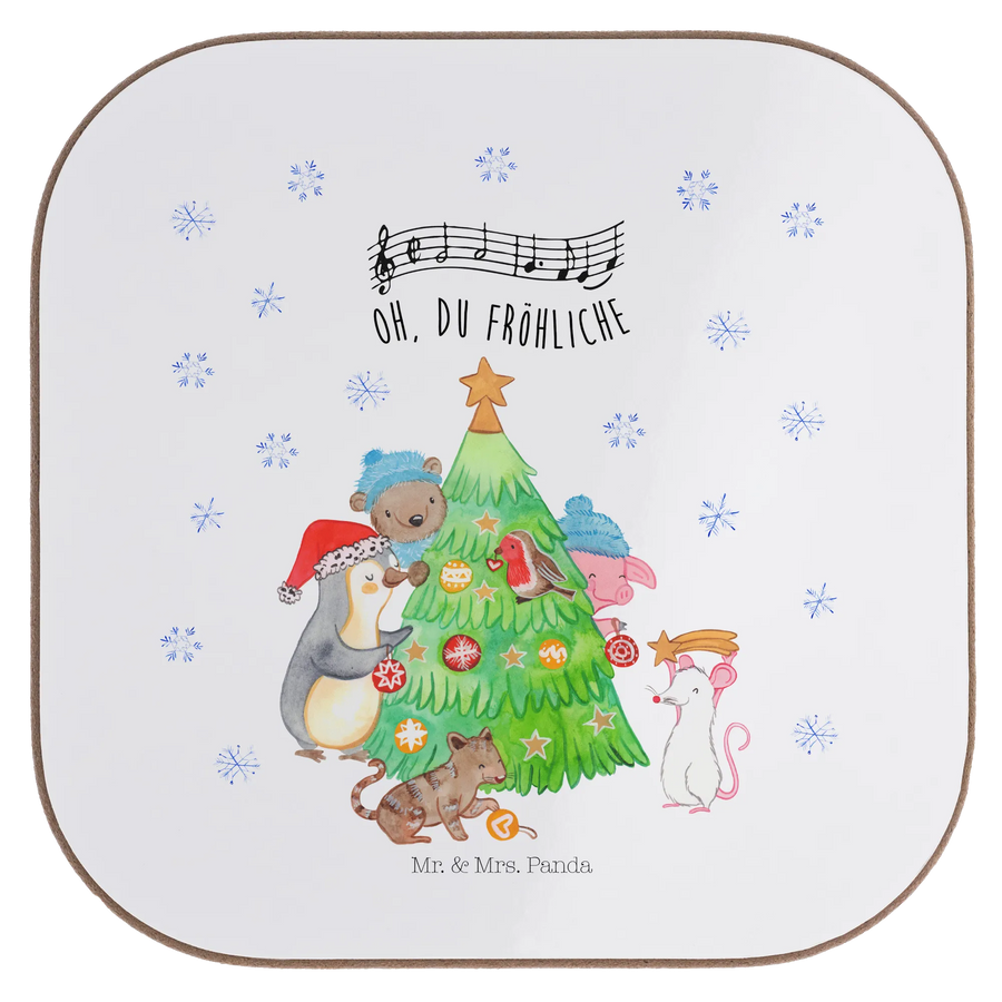 Der wunderschöne quadratische Untersetzer "Weihnachtsbaum schmücken" aus der Winter Kollektion von Mr. & Mrs. Panda ist das perfekte Geschenk für die Festtage! Mit seinem liebevoll gestalteten Motiv zeigt er einen Pinguin, ein Schwein, eine Maus, eine Katze und einen Bären, die zusammen um einen festlich geschmückten Weihnachtsbaum stehen. Dieser Untersetzer bringt nicht nur Weihnachtsstimmung in dein Zuhause, sondern ist auch äußerst praktisch.