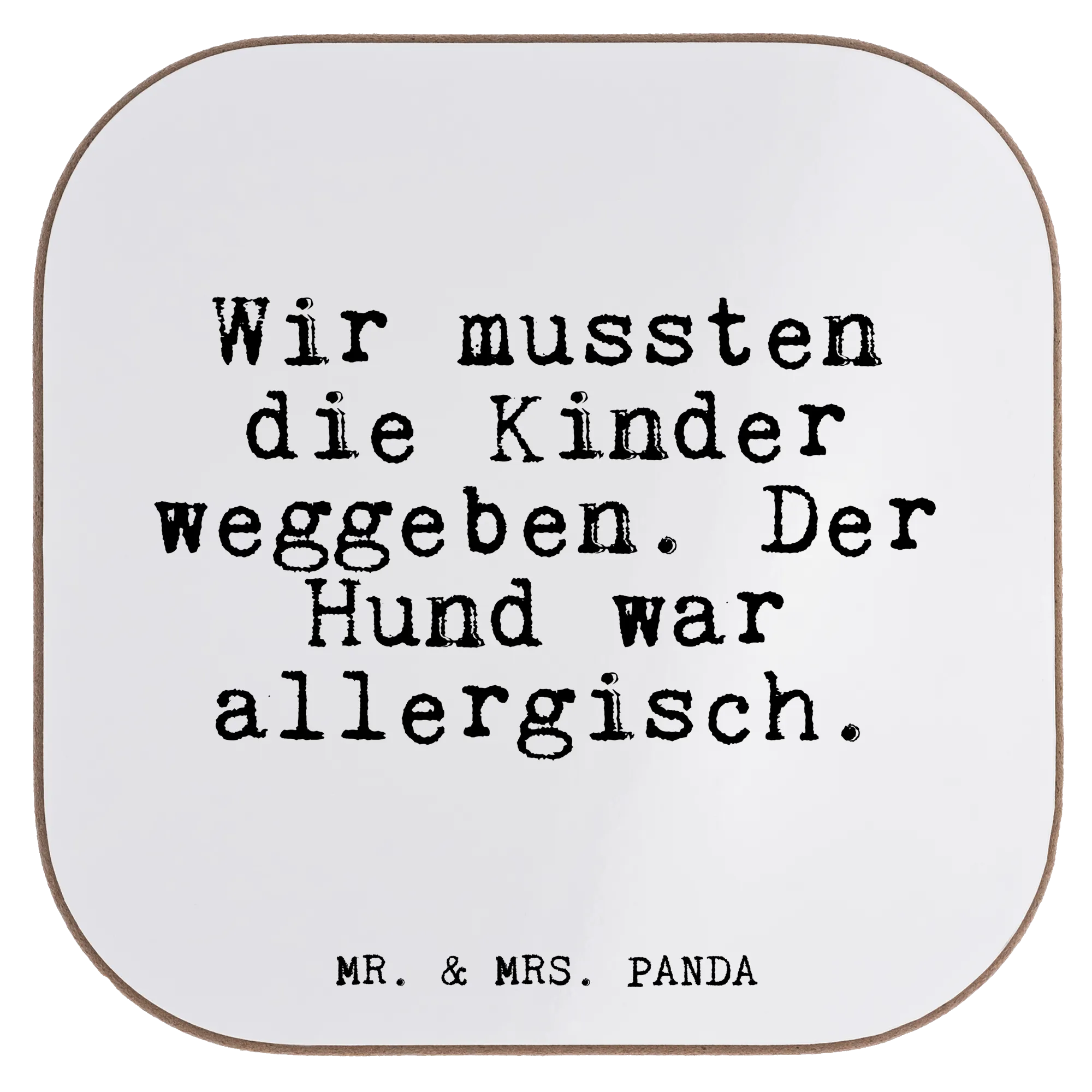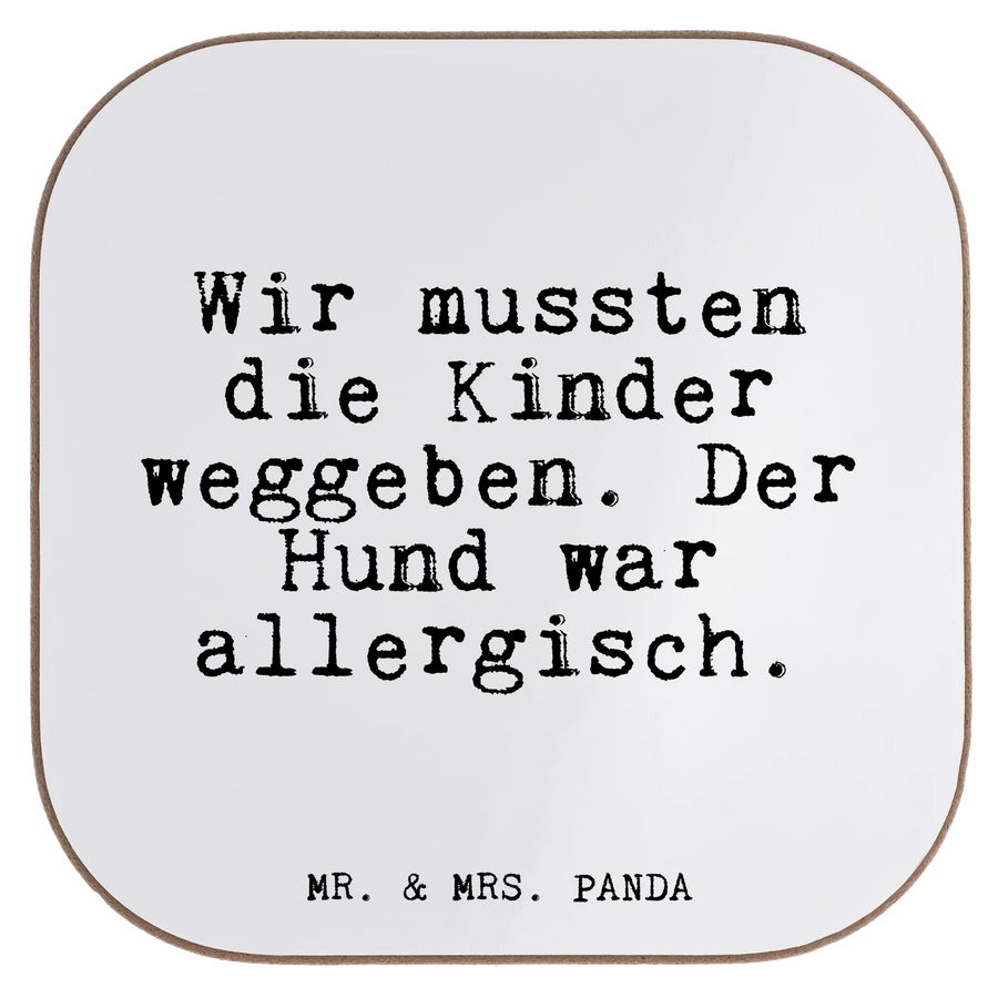 Quadratische Untersetzer Fun Talk Wir mussten die Kinder weggeben. Der Hund war allergisch.