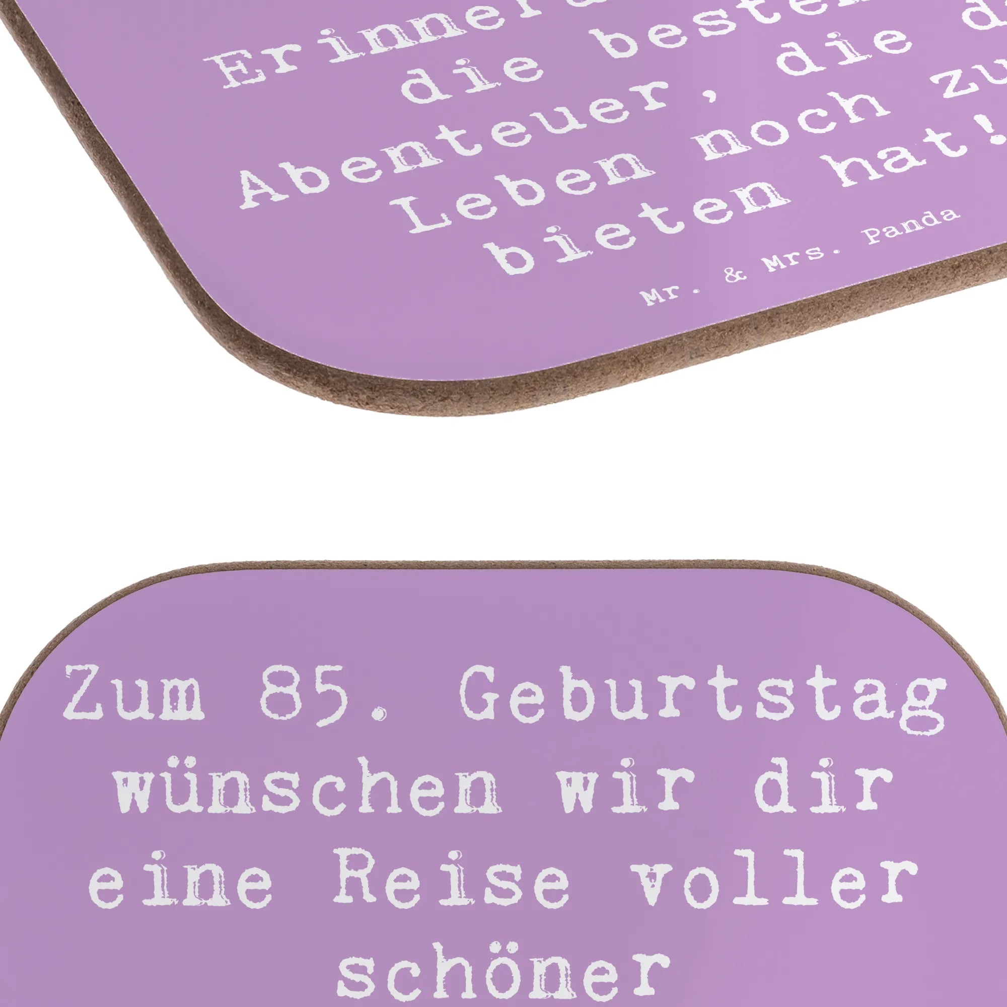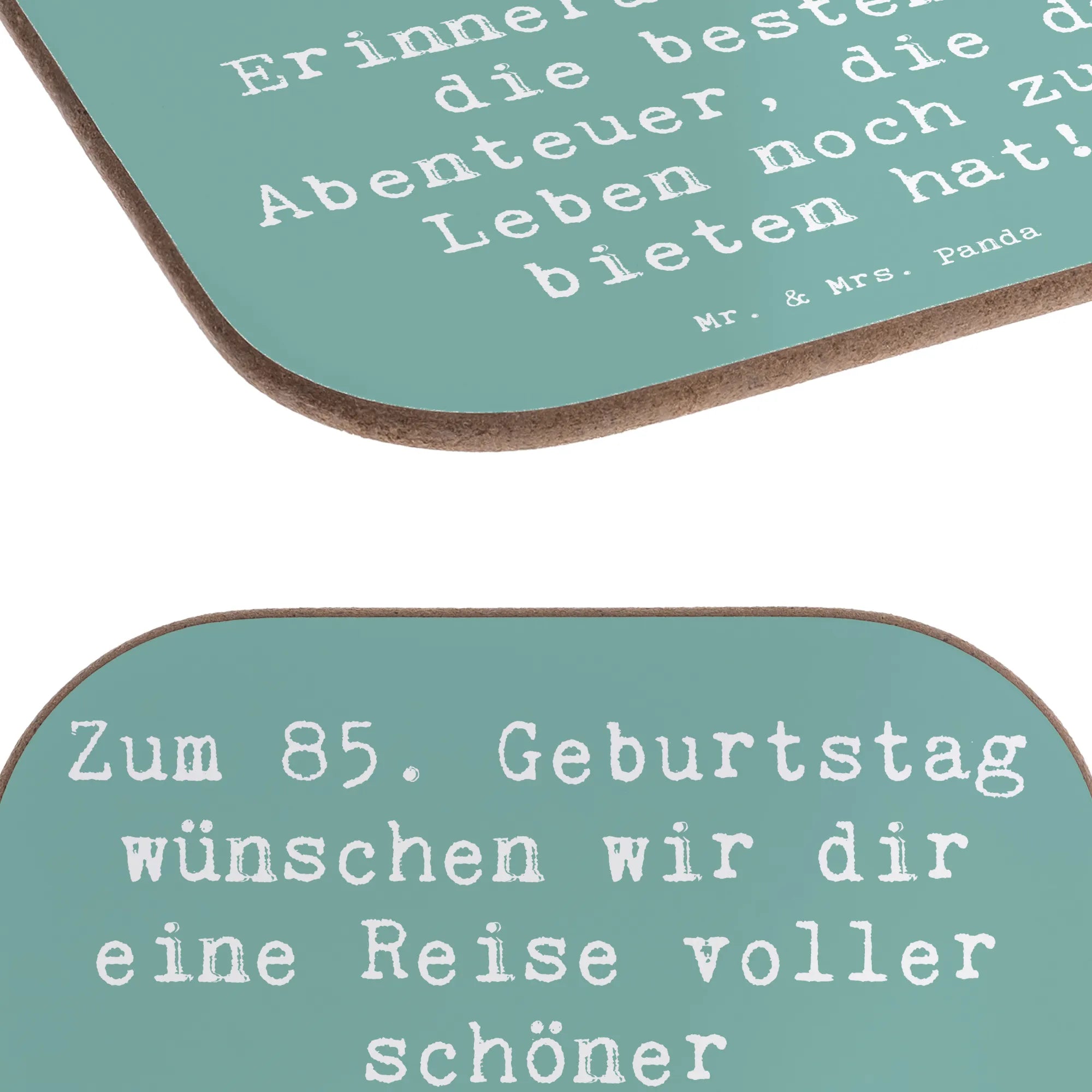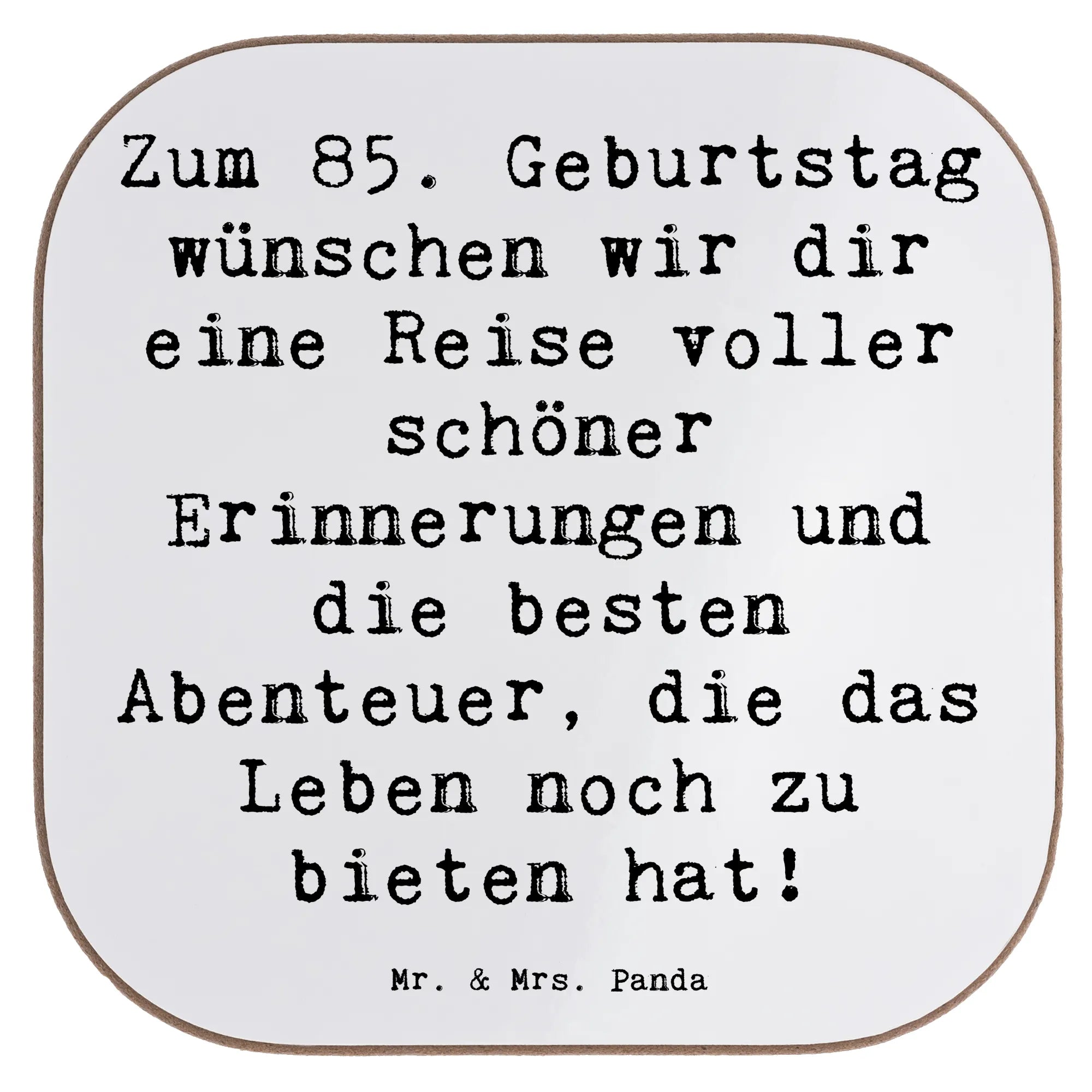 Dieser quadratische Untersetzer aus der Geburtstagskollektion „Geburtstag Alter“ ist mehr als nur ein Tischschutz – er ist ein kleines Geschenk voller Wärme. Auf dem zarten Meeresbrise-Hintergrund steht der schöne Spruch: „Zum 85. Geburtstag wünschen wir dir eine Reise voller schöner Erinnerungen und die besten Abenteuer, die das Leben noch zu bieten hat!“ Ein Aquarellmotiv von Mrs. Panda, das sofort gute Laune macht.