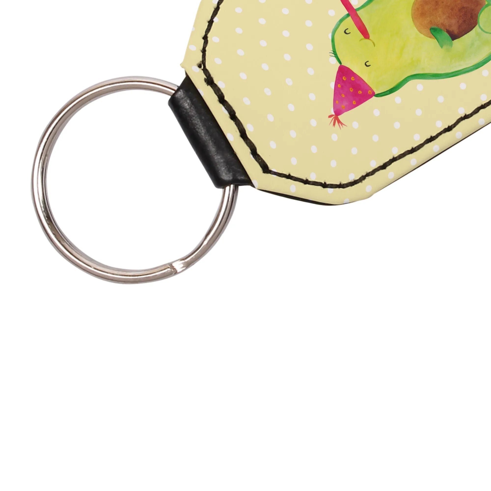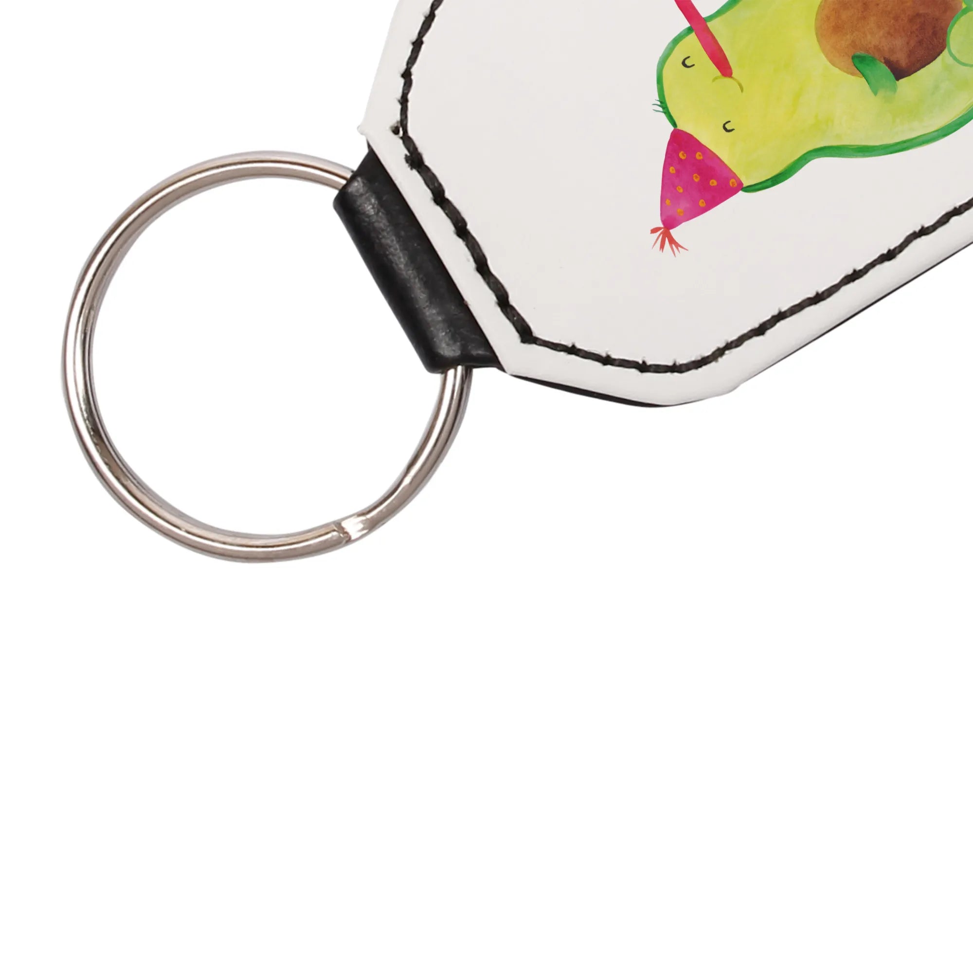 Hergestellt aus hochwertigem Premium Kunstleder, bietet er eine tolle Haptik und beständige Qualität. Die Maße von 70 mm x 40 mm sind perfekt, um ihn sowohl an deinem Schlüsselbund als auch an deiner Tasche zu befestigen. Er passt wunderbar zu der gesamten Avocado Kollektion von Mr. & Mrs. Panda, die Lebensfreude und Optimismus ausstrahlt.