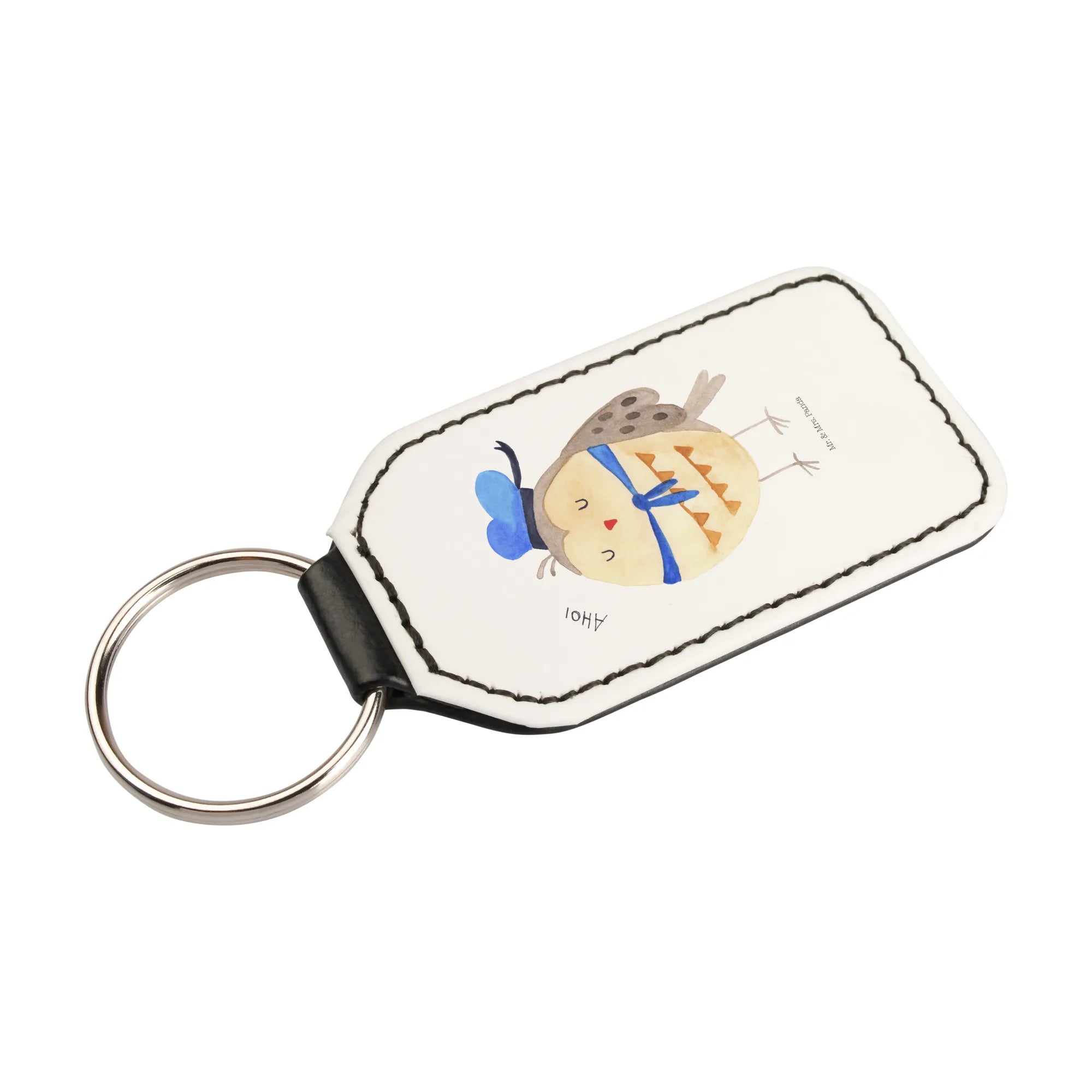 Rechteckig Schlüsselanhänger Eule Matrose - Türkis Pastell