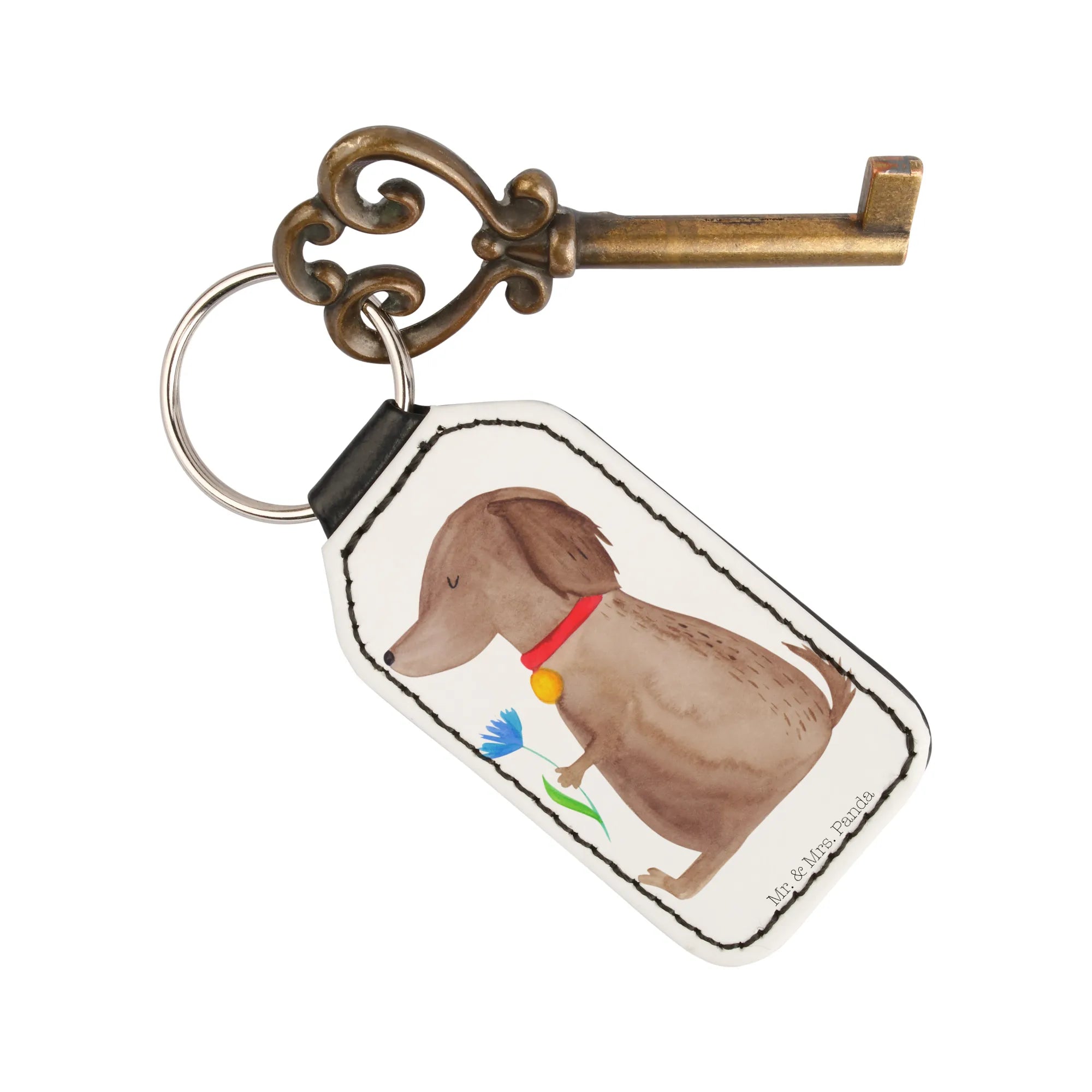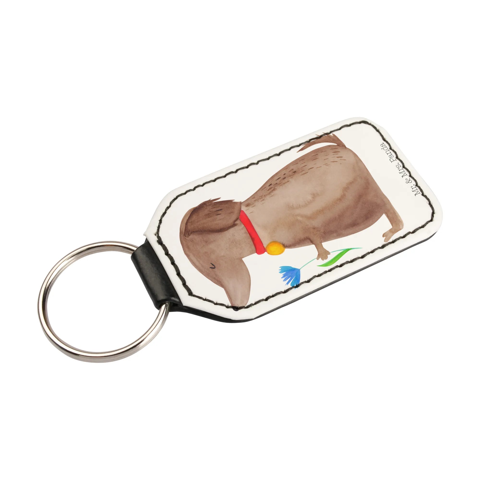 Rechteckig Schlüsselanhänger Hund Blume - Hundeglück