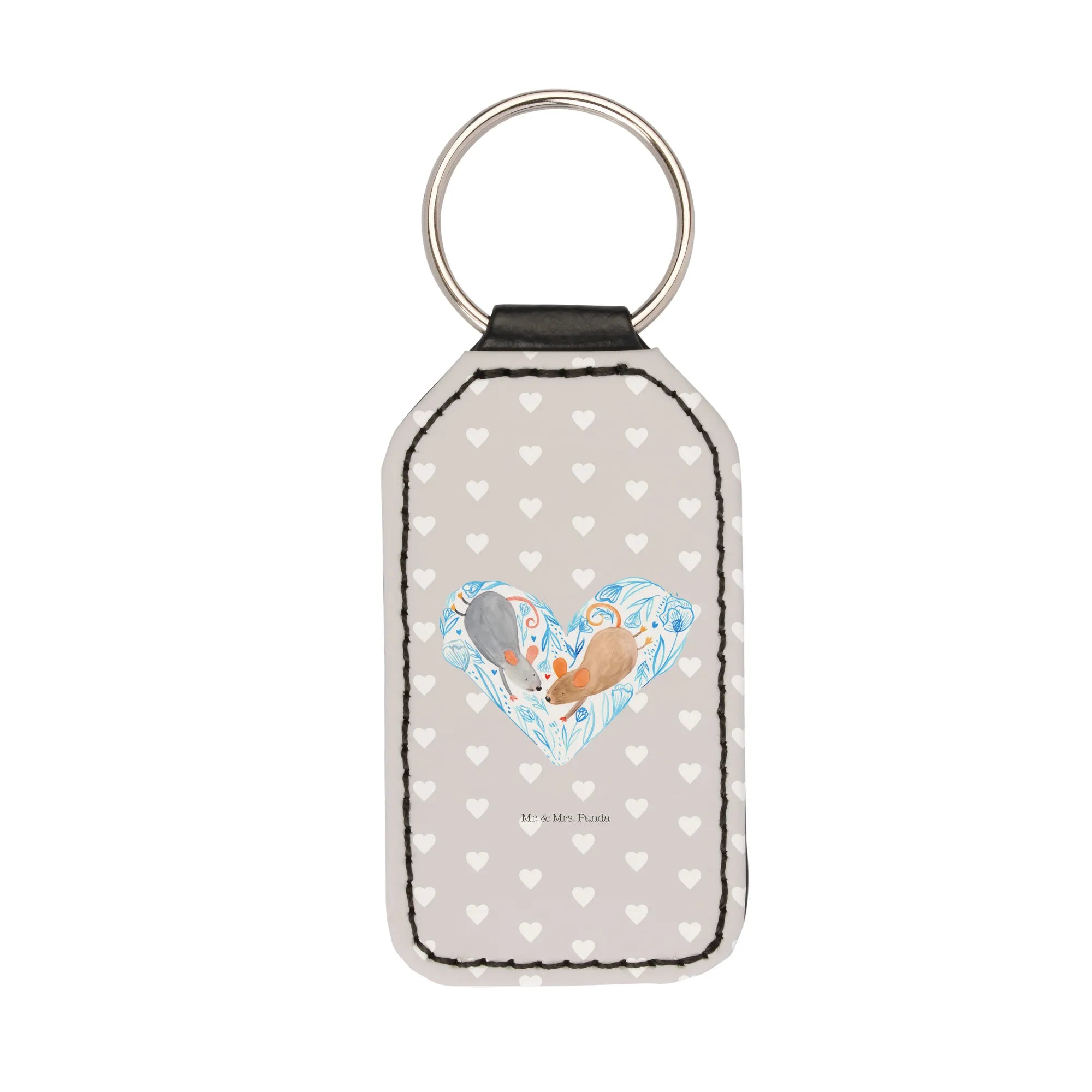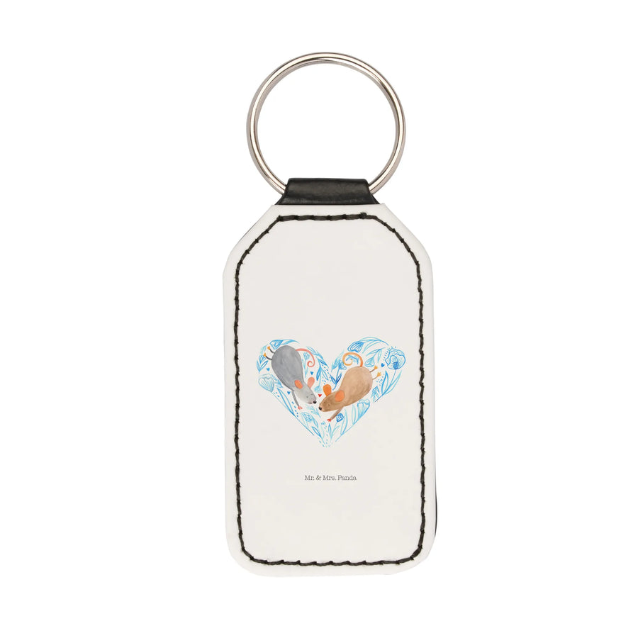 Rechteckig Schlüsselanhänger Mäuse Herz - Weiß