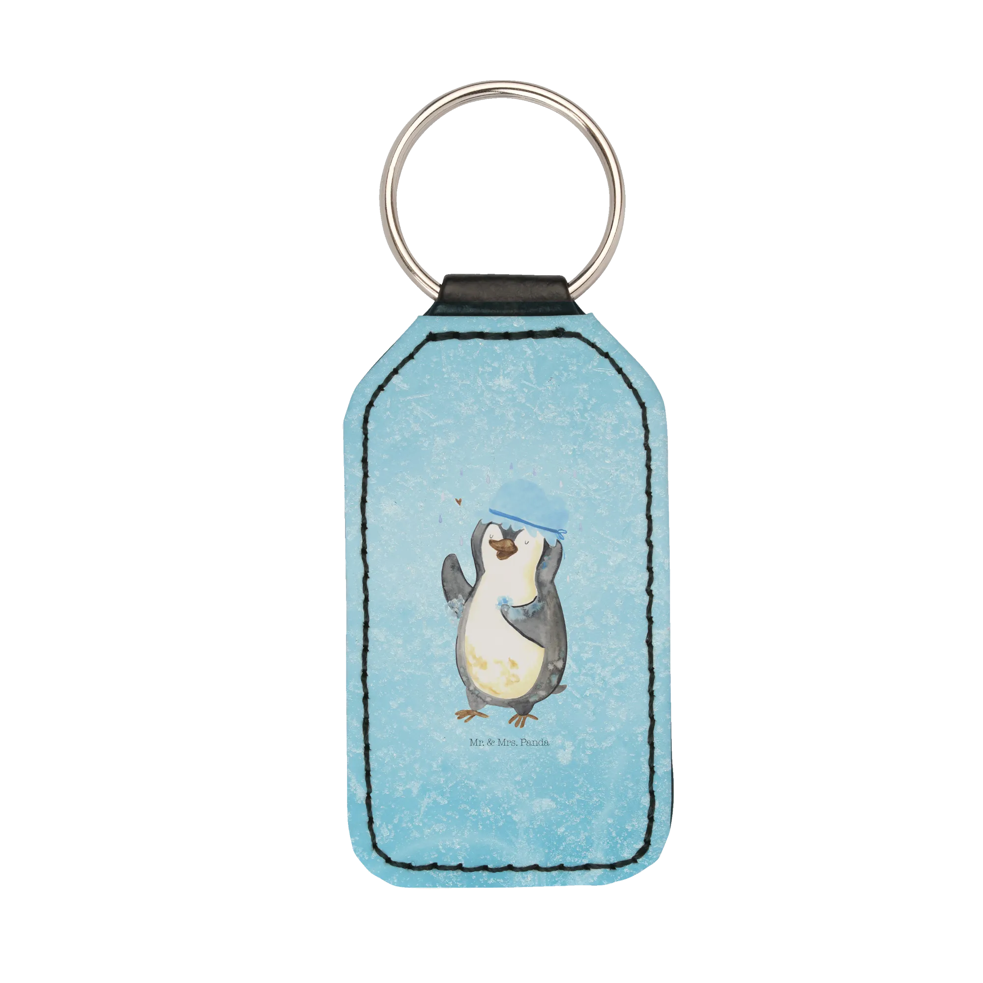 Rechteckig Schlüsselanhänger Pinguin Duschen - Eisblau