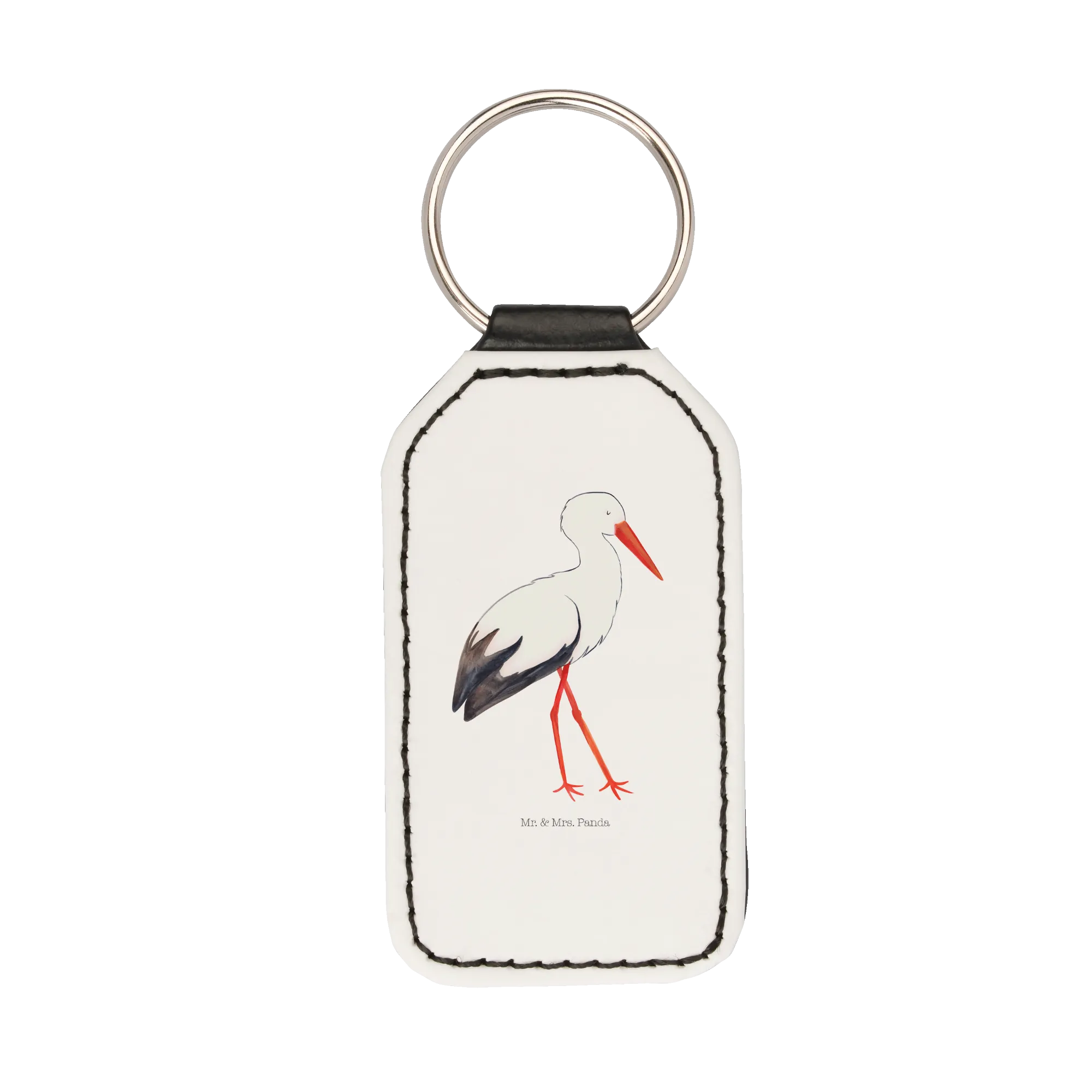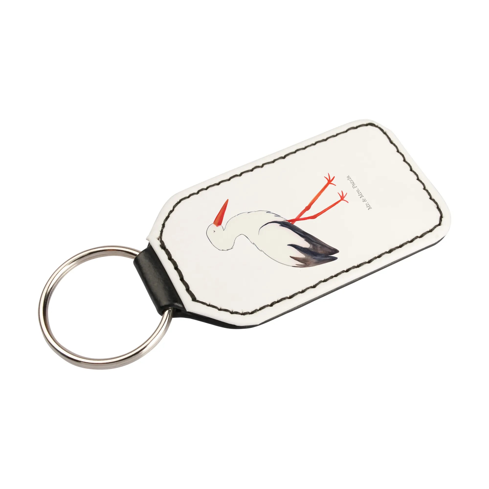 Entdecke unseren bezaubernden Rechteckigen Schlüsselanhänger mit dem süßen Storchmotiv aus der beliebten Small World Kollektion von Mr. & Mrs. Panda!