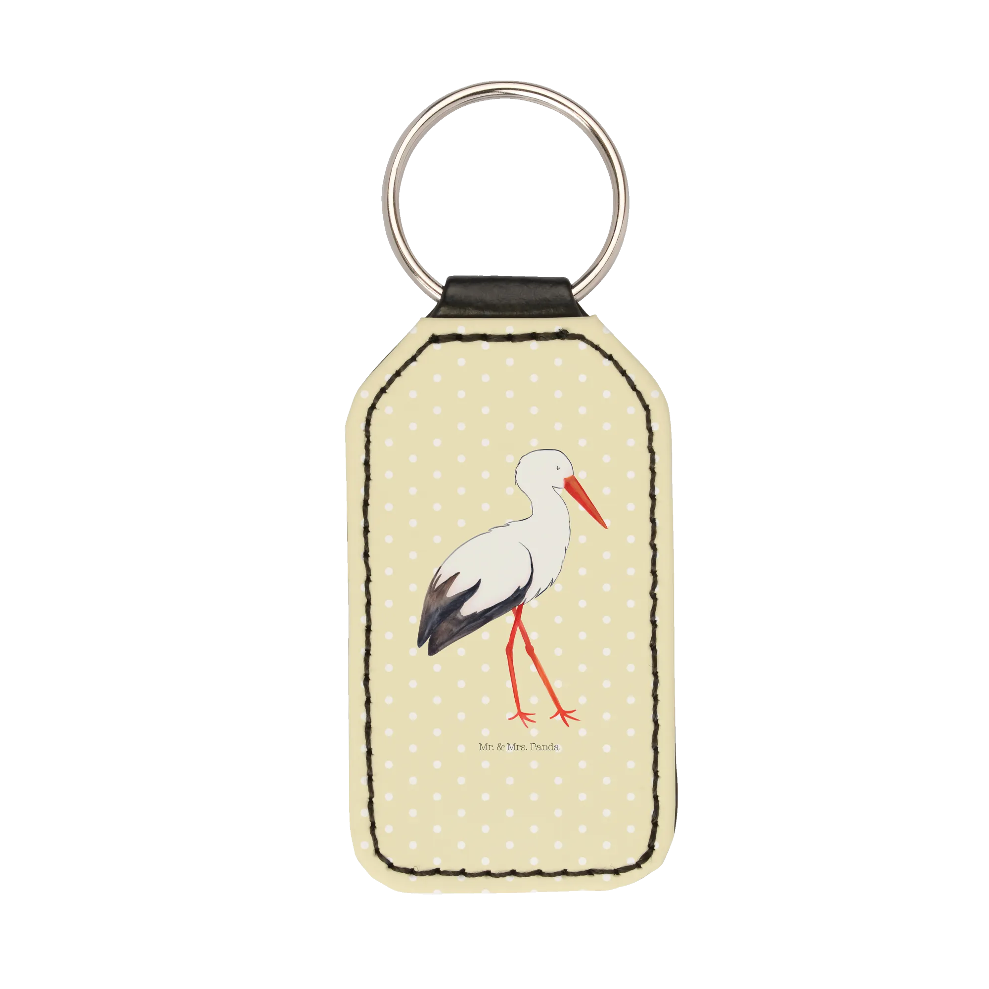 Rechteckig Schlüsselanhänger Storch - Gelb Pastell