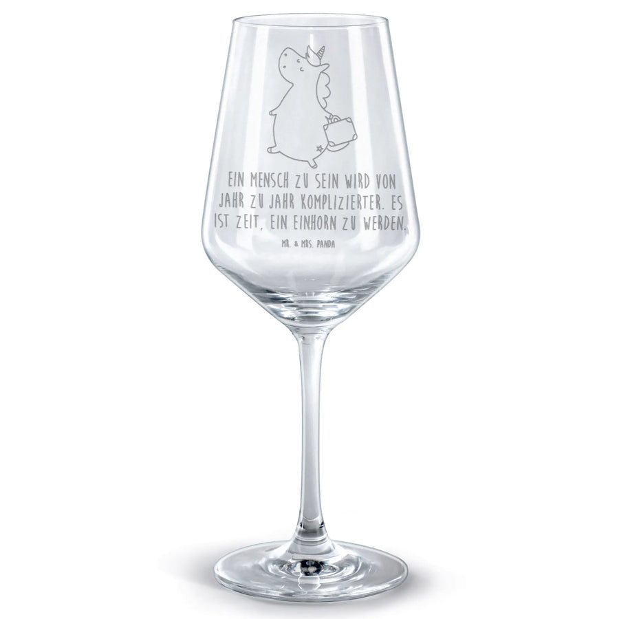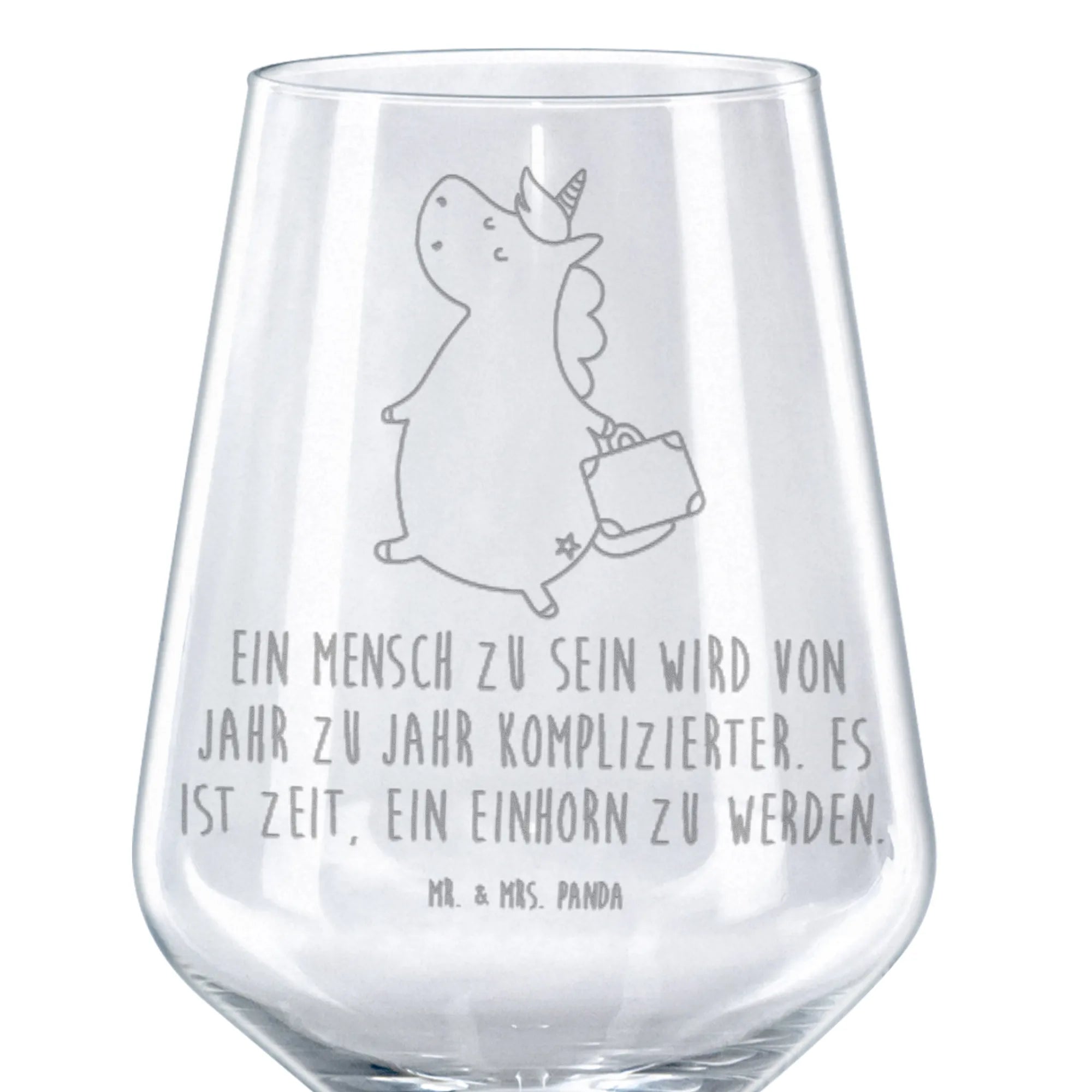 Das robuste Glas ist pflegeleicht und spülmaschinengeeignet. Die detailreiche Lasergravur verbindet das charmante Einhorn mit einem Koffer, perfekt für alle, die die Abenteuer des Lebens lieben – egal ob jung oder alt! Der Spruch „Ein Mensch zu sein wird von Jahr zu Jahr komplizierter. Es ist Zeit, ein Einhorn zu werden.“ auf dem Glas bringt ein Lächeln in dein Gesicht und macht es zum perfekten Accessoire für gesellige Abende mit Freunden oder romantische Dinner.