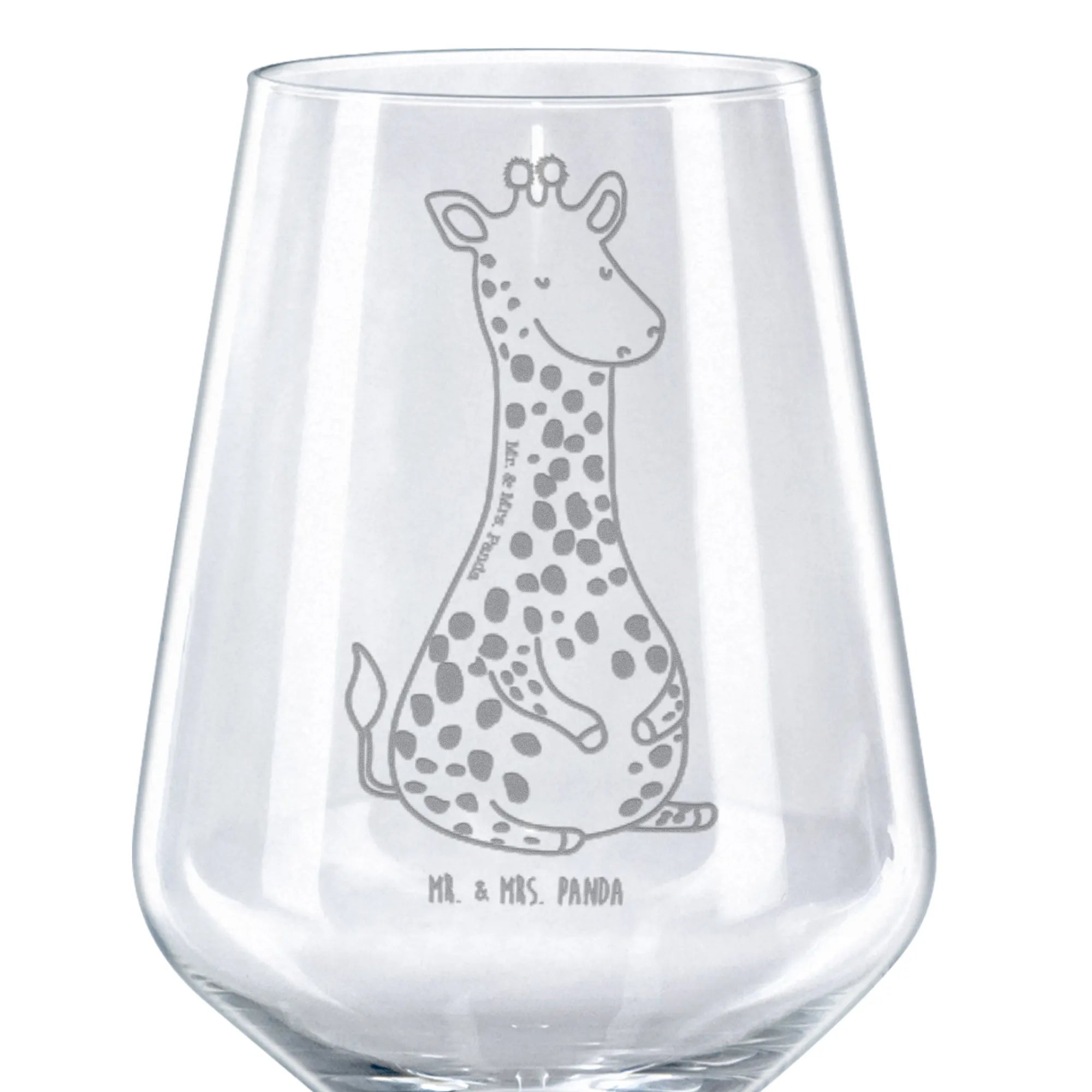 Glas Rotwein Giraffe Zufrieden - mit Spruch