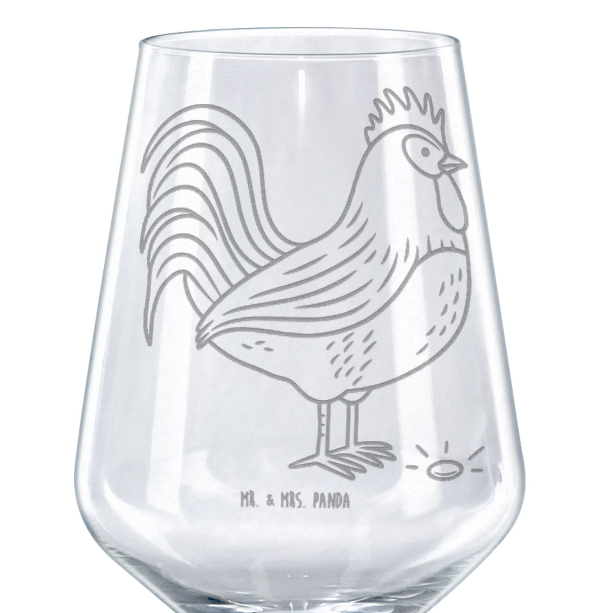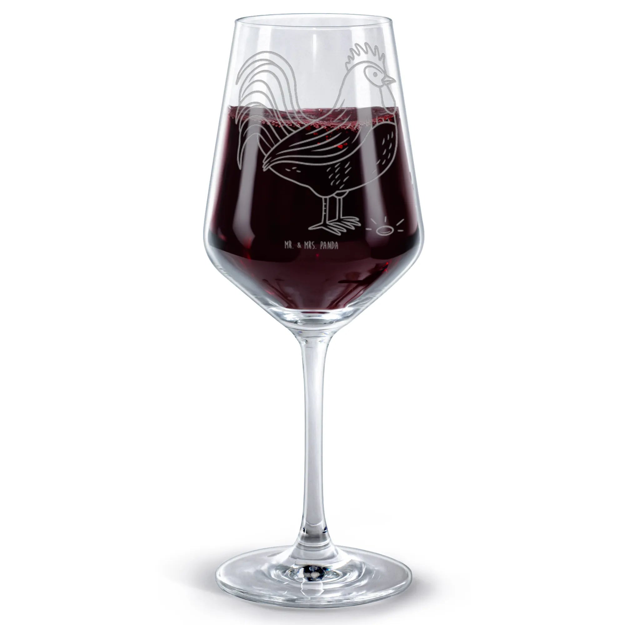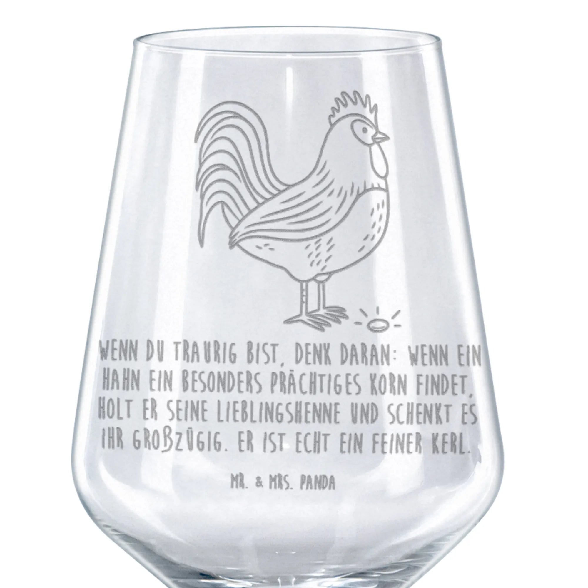 Rotweinglas mit Gravur Hahn Korn - mit Spruch