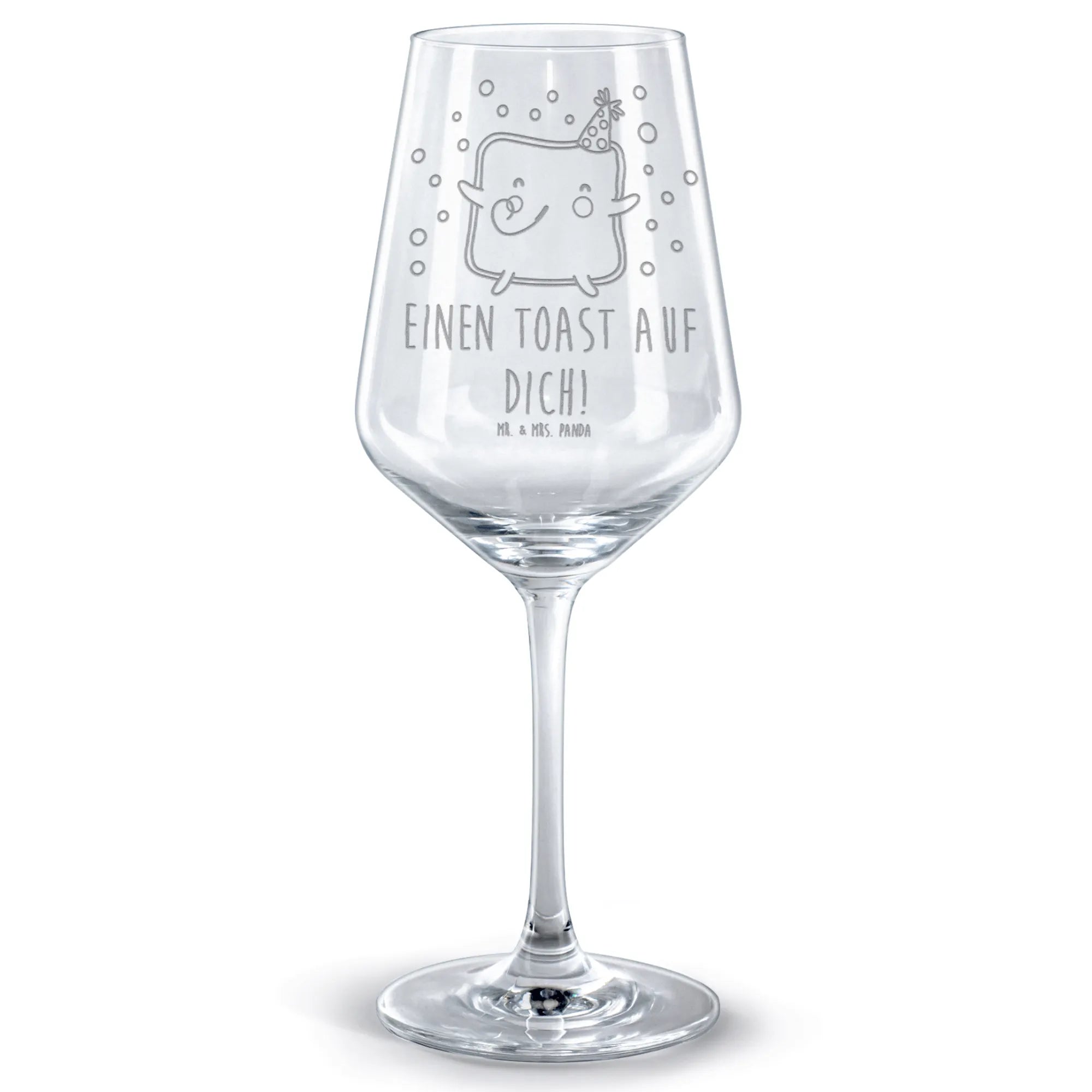 Das Wunderschöne Rotweinglas mit dem liebevollen Motiv "Toast Party" von Mr. & Mrs. Panda ist das perfekte Geschenk für alle Weinliebhaber. Mit seiner hochwertigen Lasergravur und dem originellen Design zaubert es jedem ein Lächeln ins Gesicht. Das Glas zeigt einen fröhlichen Toast mit Gesicht und Partyhut, umgeben von buntem Konfetti – ideal für jeden Anlass, sei es der Valentinstag, ein Hochzeitstag oder ein Jahrestag.