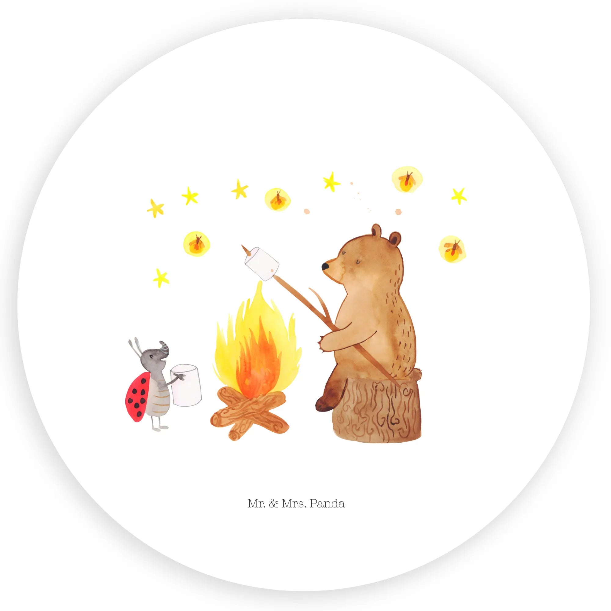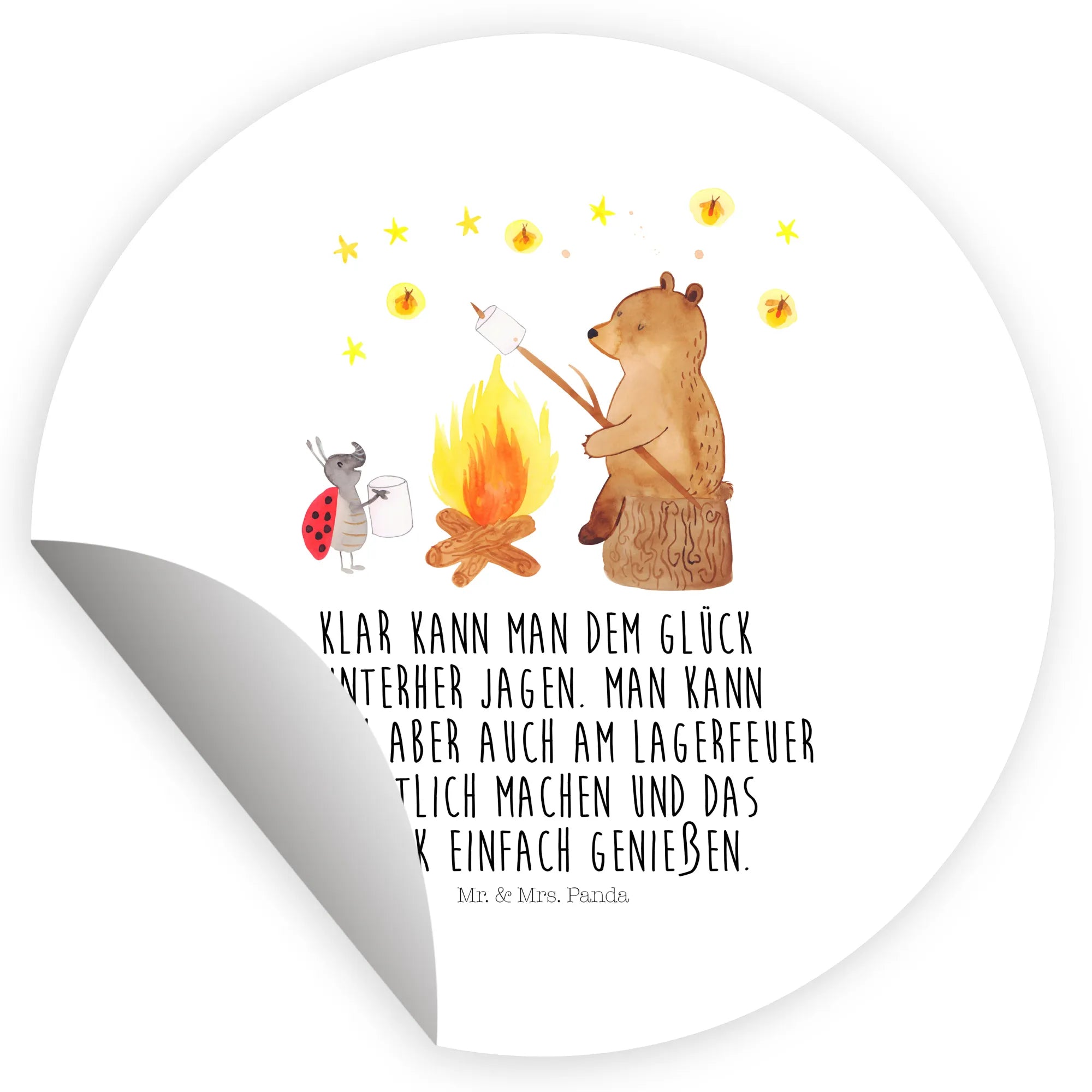 Aufkleber Bär & Marienkäfer Lagerfeuer - 80mm Rund Aufkleber - mit Spruch