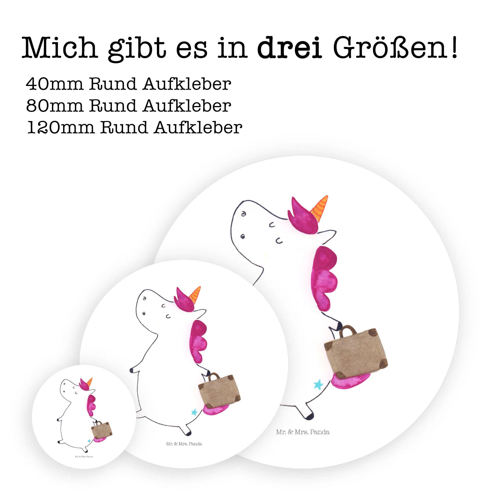 Rund Aufkleber Einhorn Koffer - 80mm Rund Aufkleber - mit Spruch