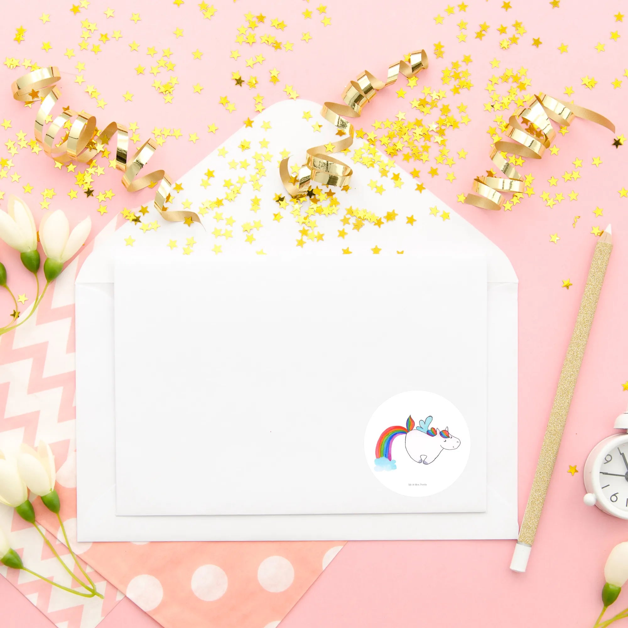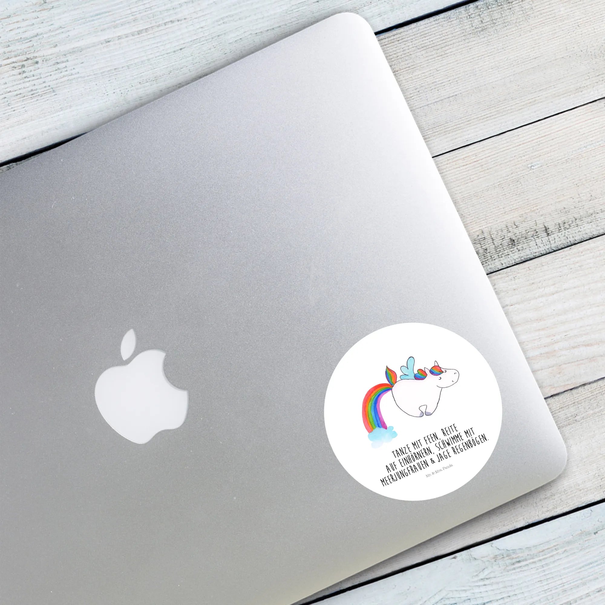 Rund Aufkleber Einhorn Fliegendes Pferd - 80mm Rund Aufkleber - mit Spruch