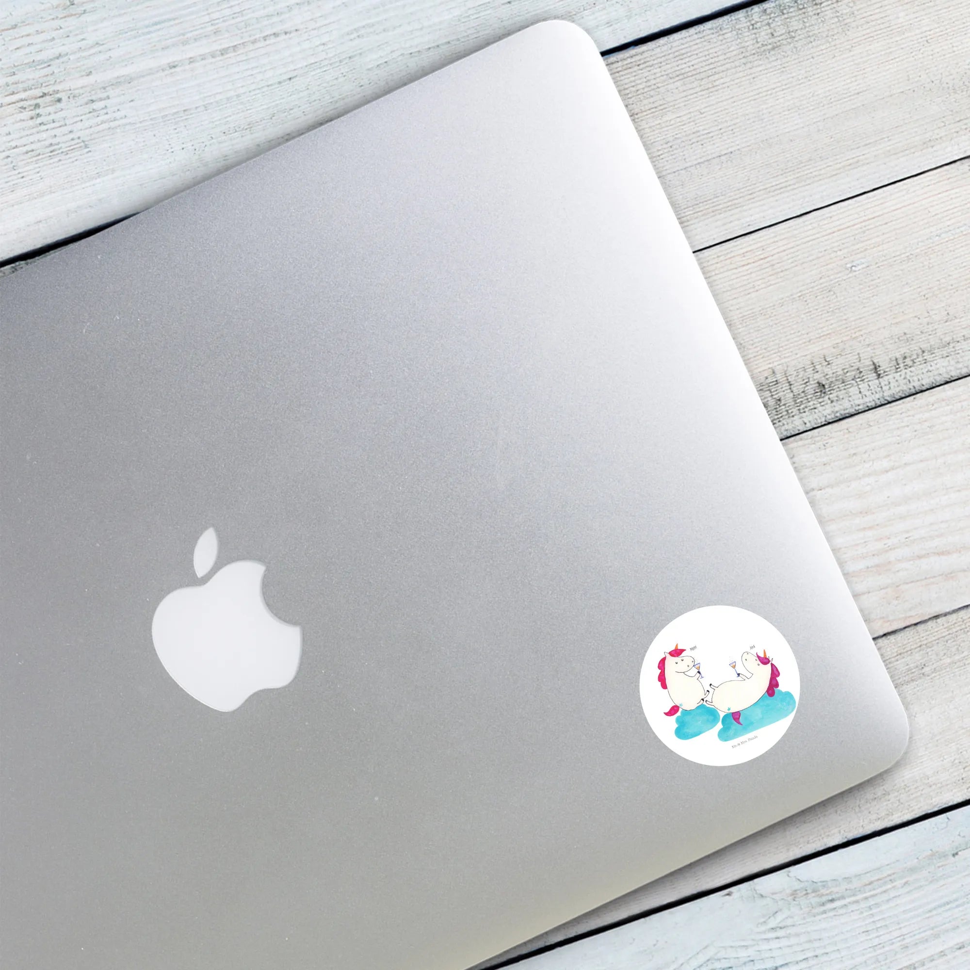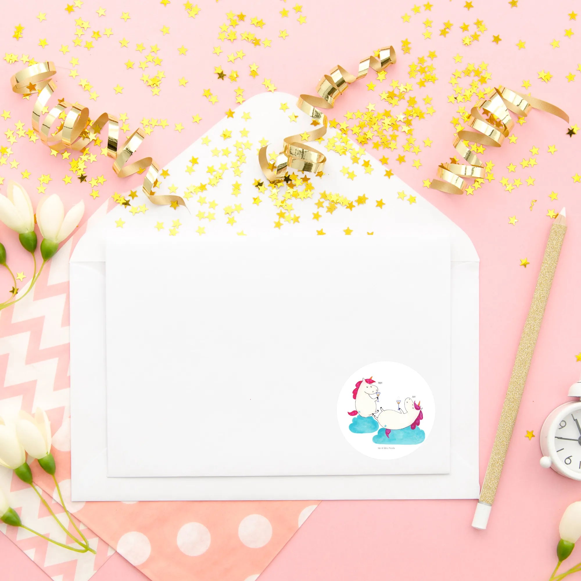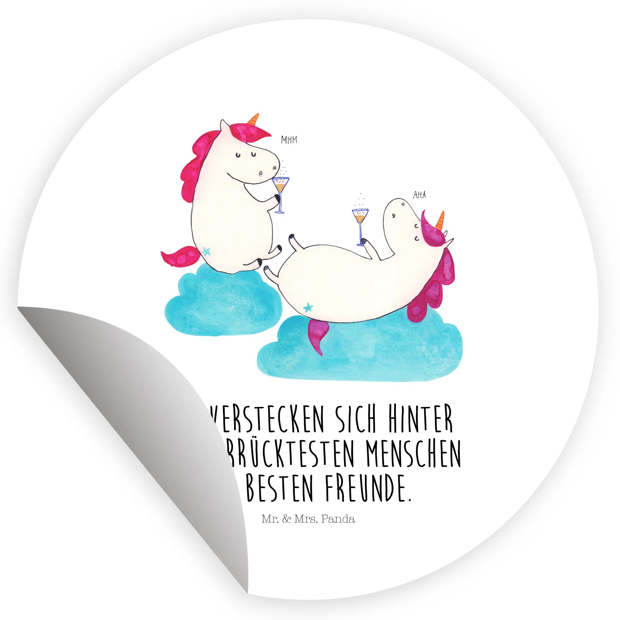 Rund Aufkleber Einhörner Sekt - 80mm Rund Aufkleber - mit Spruch
