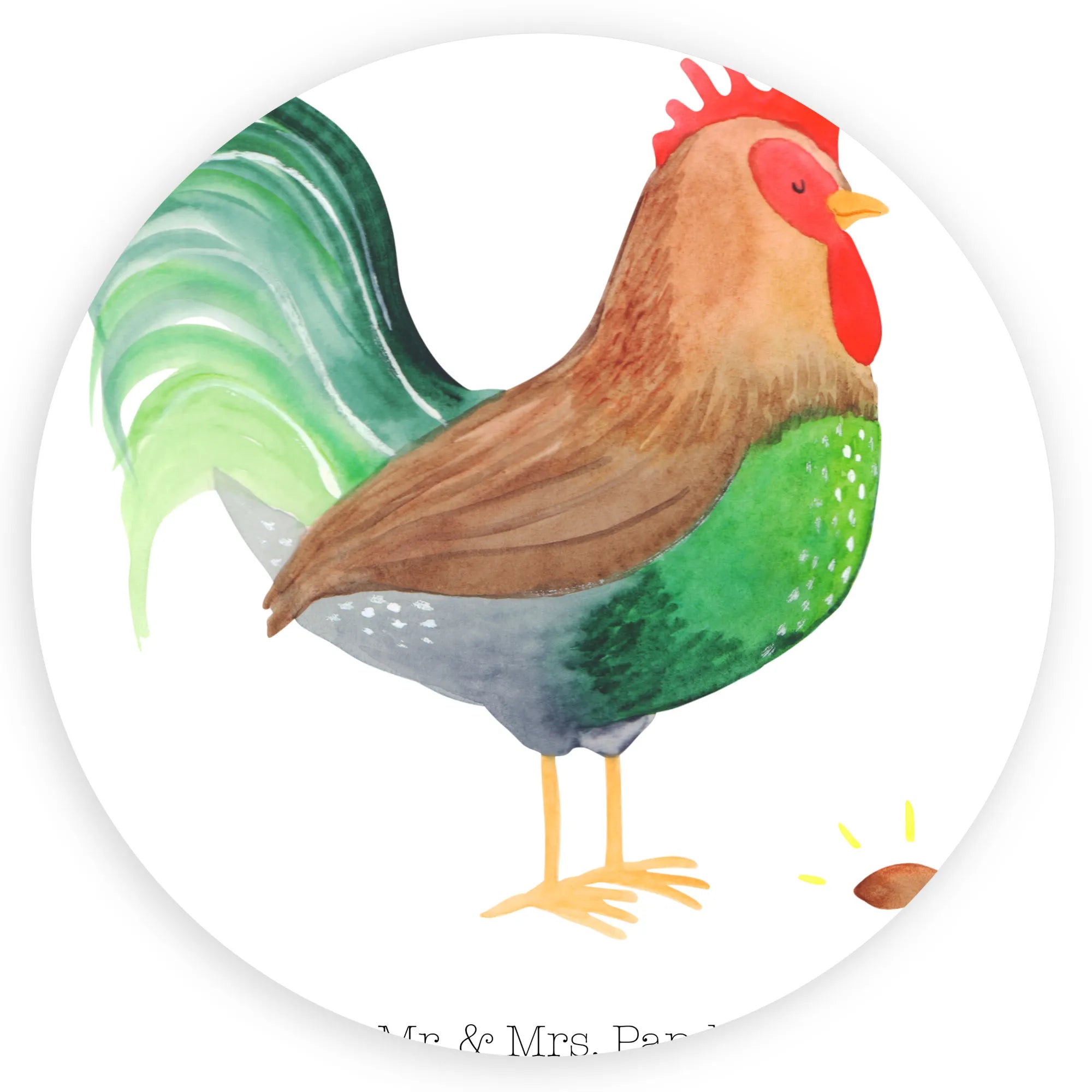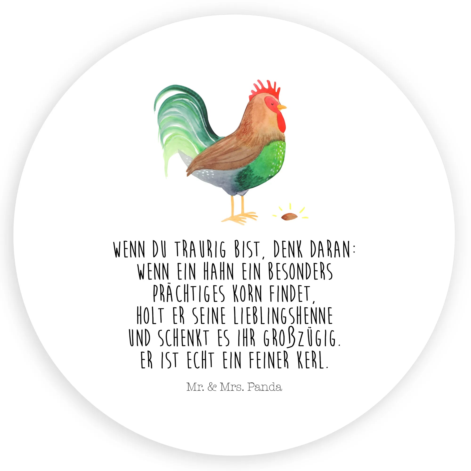 Mr. & Mrs. Panda präsentiert: der süße 120mm Rund Aufkleber „Hahn mit Korn"