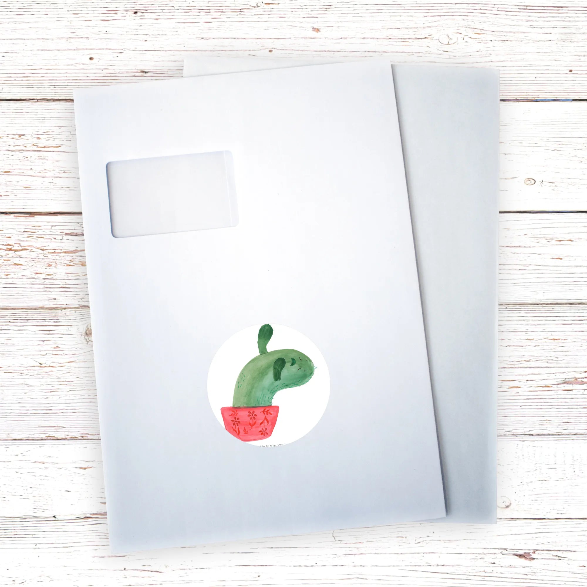Der fröhliche Kaktus aus der Kaktus - Kollektion von Mr. & Mrs. Panda bringt Sonne in Deinen Alltag. Die handgezeichnete Aquarell-Illustration zeigt einen süßen, leicht empörten Kaktus, der sofort zum Sammeln, Verschenken und Dekorieren einlädt. Ob als runder Sticker für Geschenkverpackungen, rundes Etikett für Flaschen oder dekoratives Label im Journal – dieser Aufkleber ist vielseitig und liebevoll gestaltet.