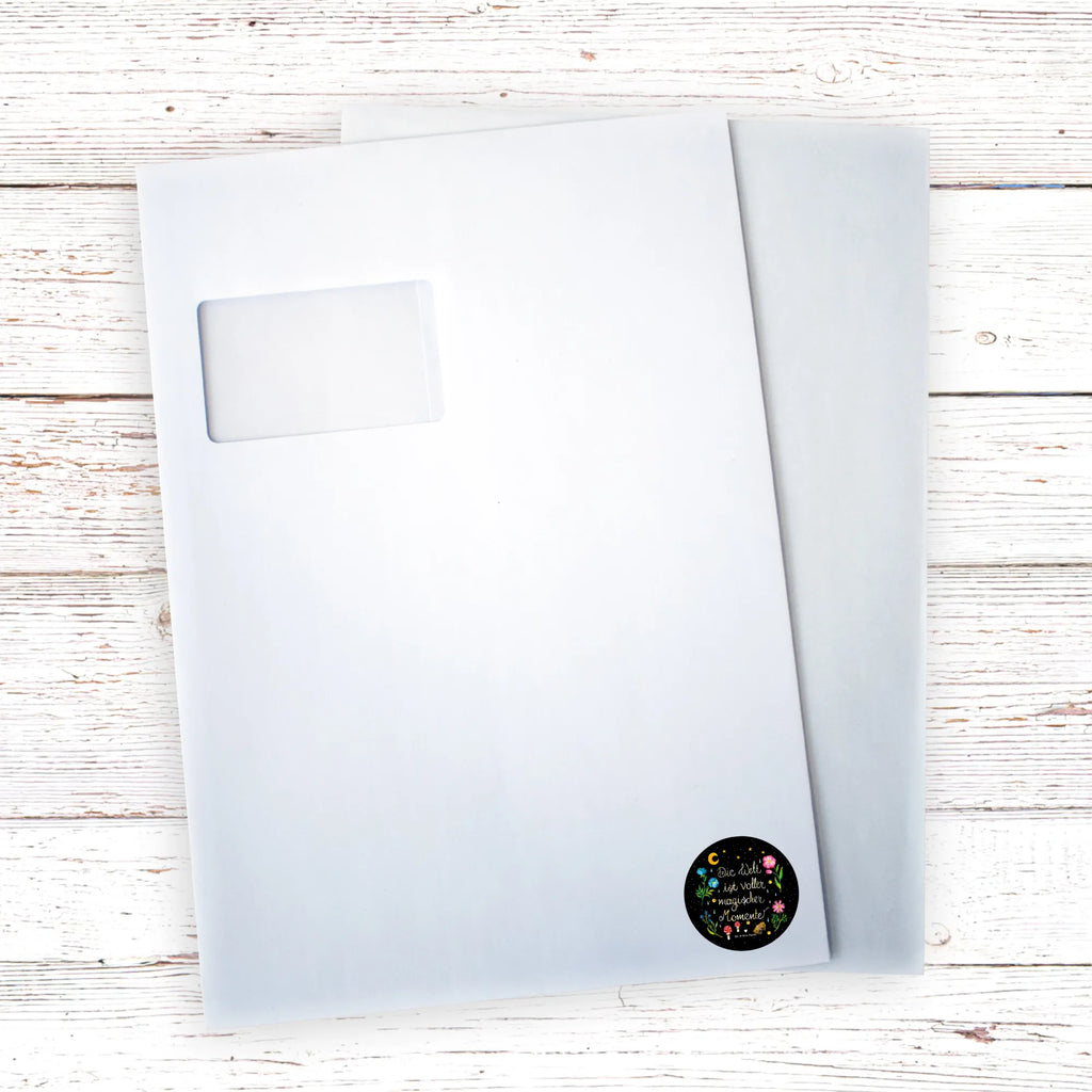 Entdecke den zauberhaften 80mm Rund Aufkleber "Magische Welt" aus der Collection Wild & Free von Mr. & Mrs. Panda! Dieser Sticker ist nicht nur wunderschön, sondern auch eine kreative Möglichkeit, deine positive Botschaft in die Welt zu tragen.