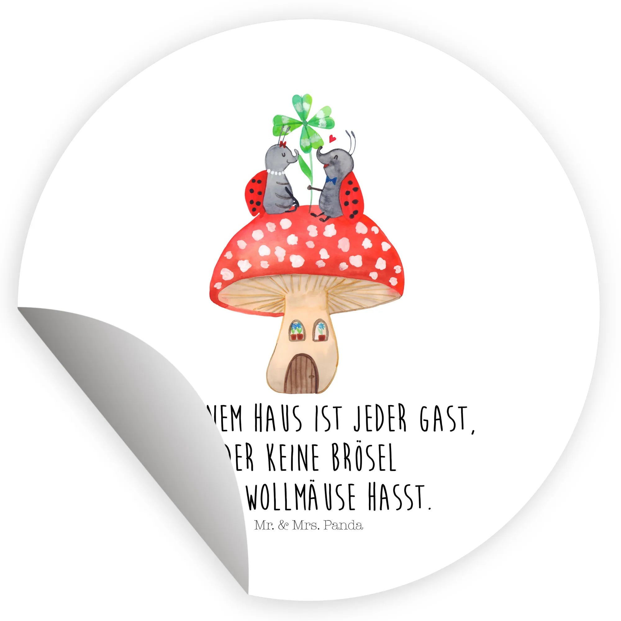 Sticker Marienkäfer Fliegenpilz - 80mm Rund Aufkleber - mit Spruch - Weiß
