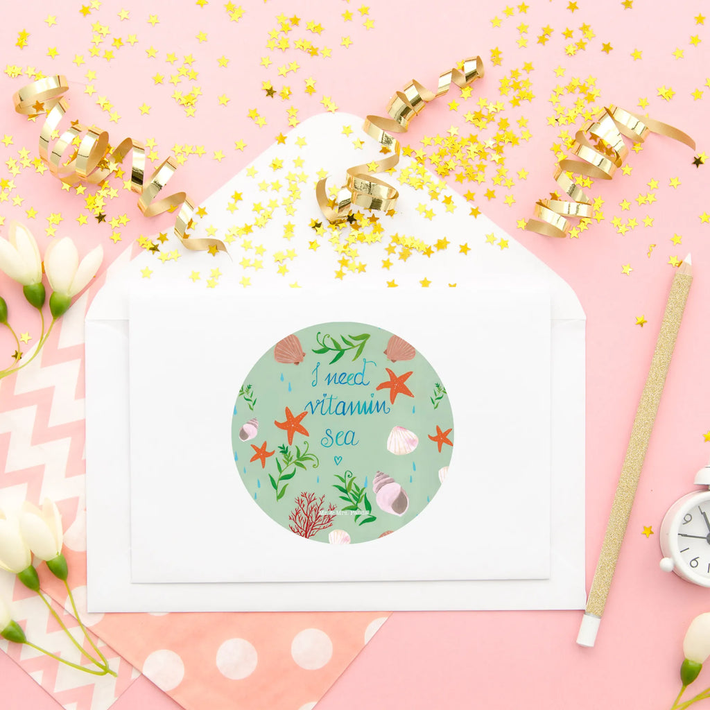 Rund Aufkleber Vitamin Sea Aufkleber, Etikett, Sticker, Dekoration, Abenteuer, Natur, Outdoor, Blumen Deko, Frühlings Deko, Sommer Deko, positive Botschaft, Naturliebhaber, See, Strand Urlaub, Vitamin Sea, Urlaub Am Meer, Schwimmer Geschenk, Schwimmen Spruch, Wasserratte Geschenk