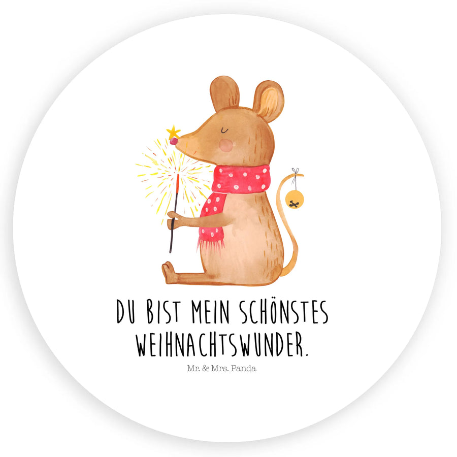Rund Aufkleber Weihnachtsmaus - 80mm Rund Aufkleber - mit Spruch - Weiß