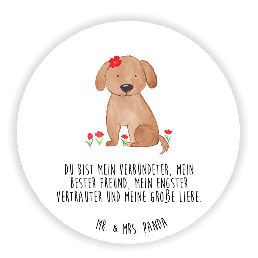 Der Rund Magnet "Hund Hundedame" aus der liebevollen Hunde Kollektion von Mr. & Mrs. Panda ist das perfekte Geschenk für jeden Hundeliebhaber. Mit einem fröhlichen Motiv einer niedlichen Hundedame, die eine Blume auf dem Kopf trägt, zaubert er jedem ein Lächeln ins Gesicht.