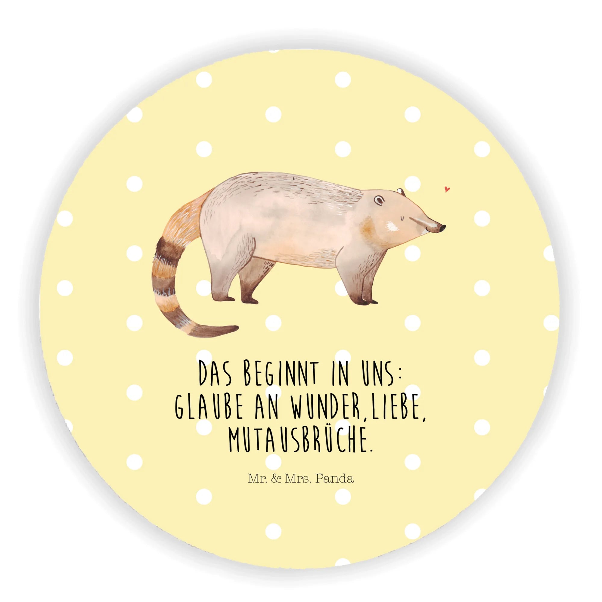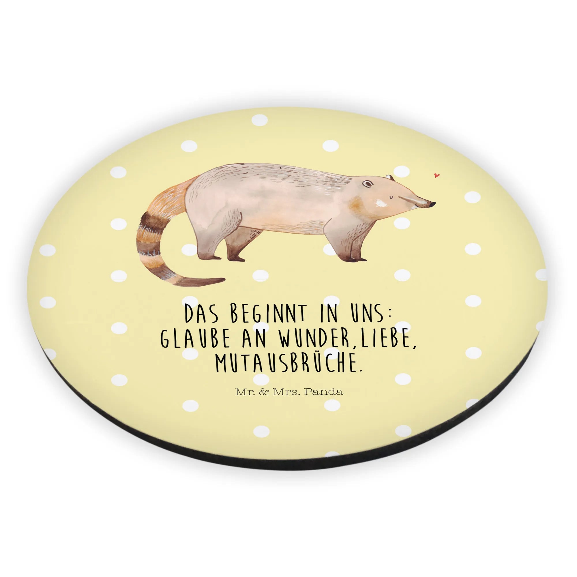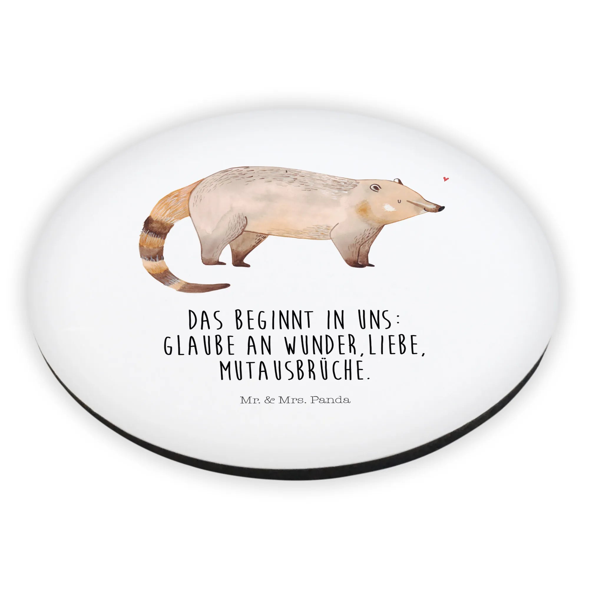 Der süße Rund Magnet mit dem niedlichen Nasenbär-Motiv aus der Small World Kollektion von Mr. & Mrs. Panda ist ein absolutes Must-Have für jeden Tierliebhaber und ein perfektes Geschenk für Freunde und Familie!
