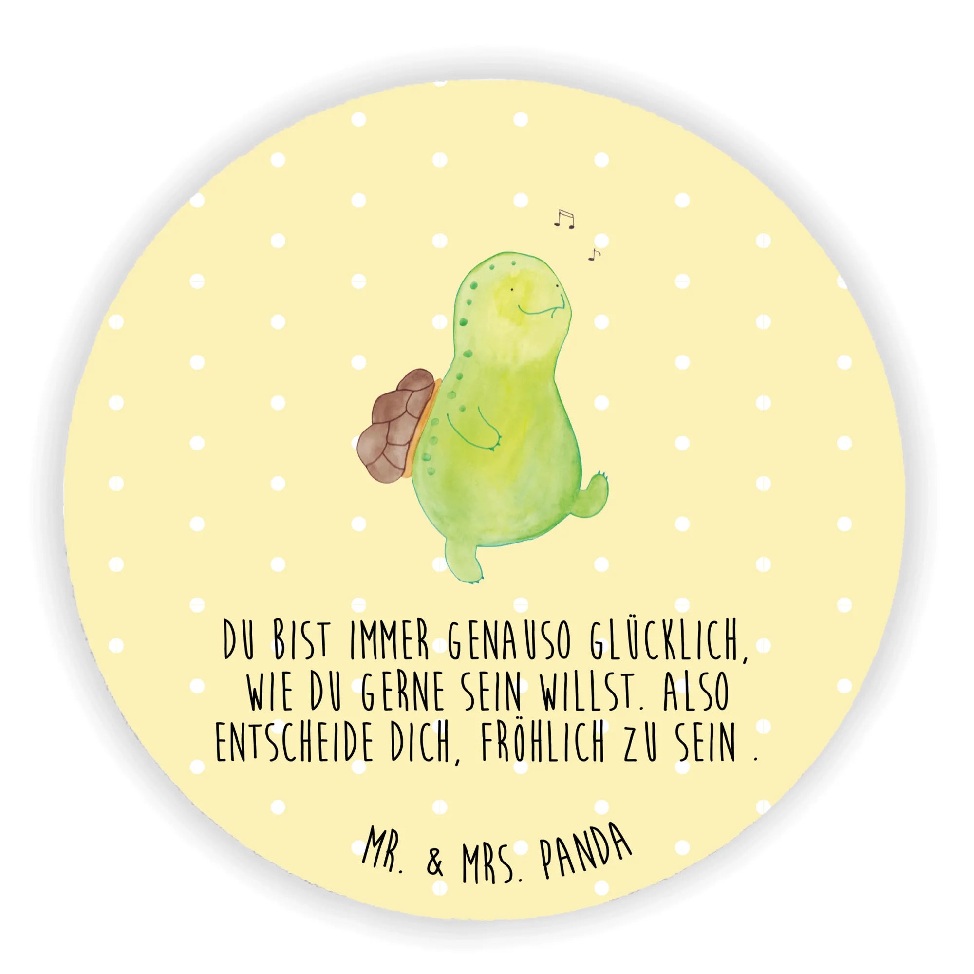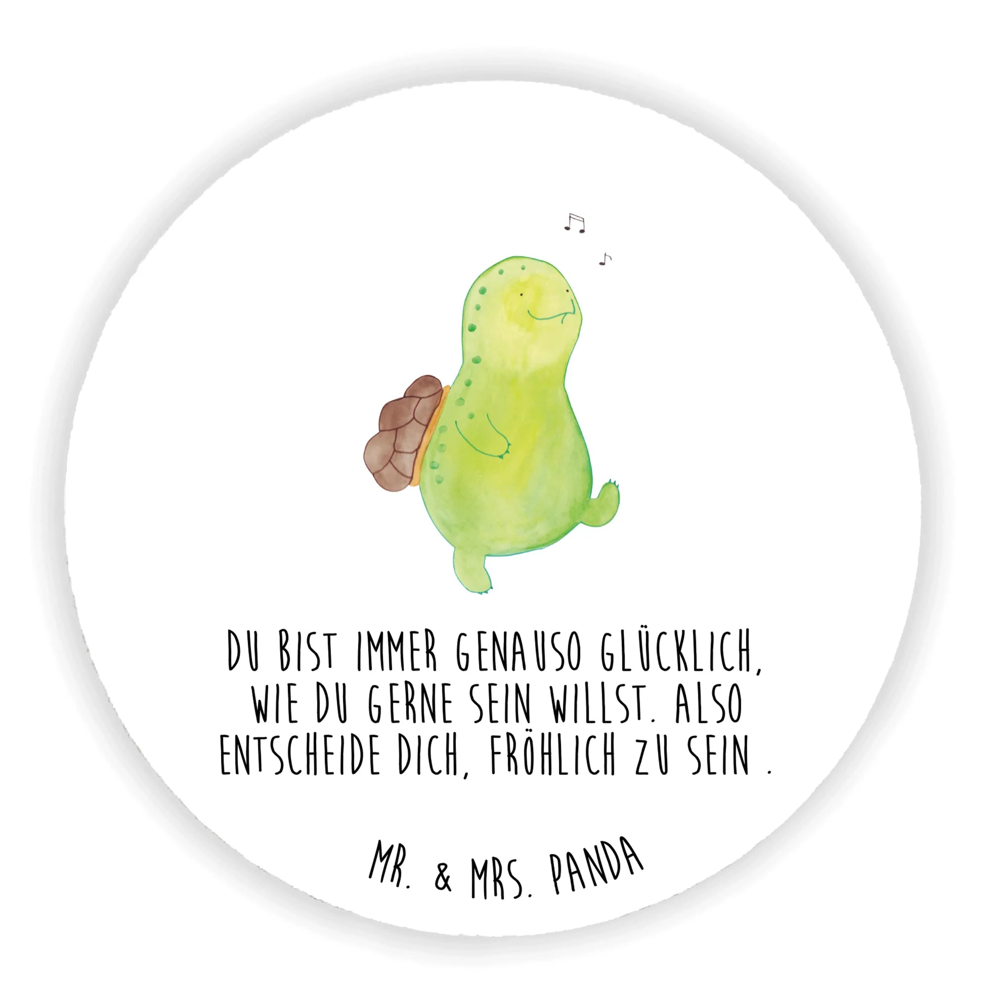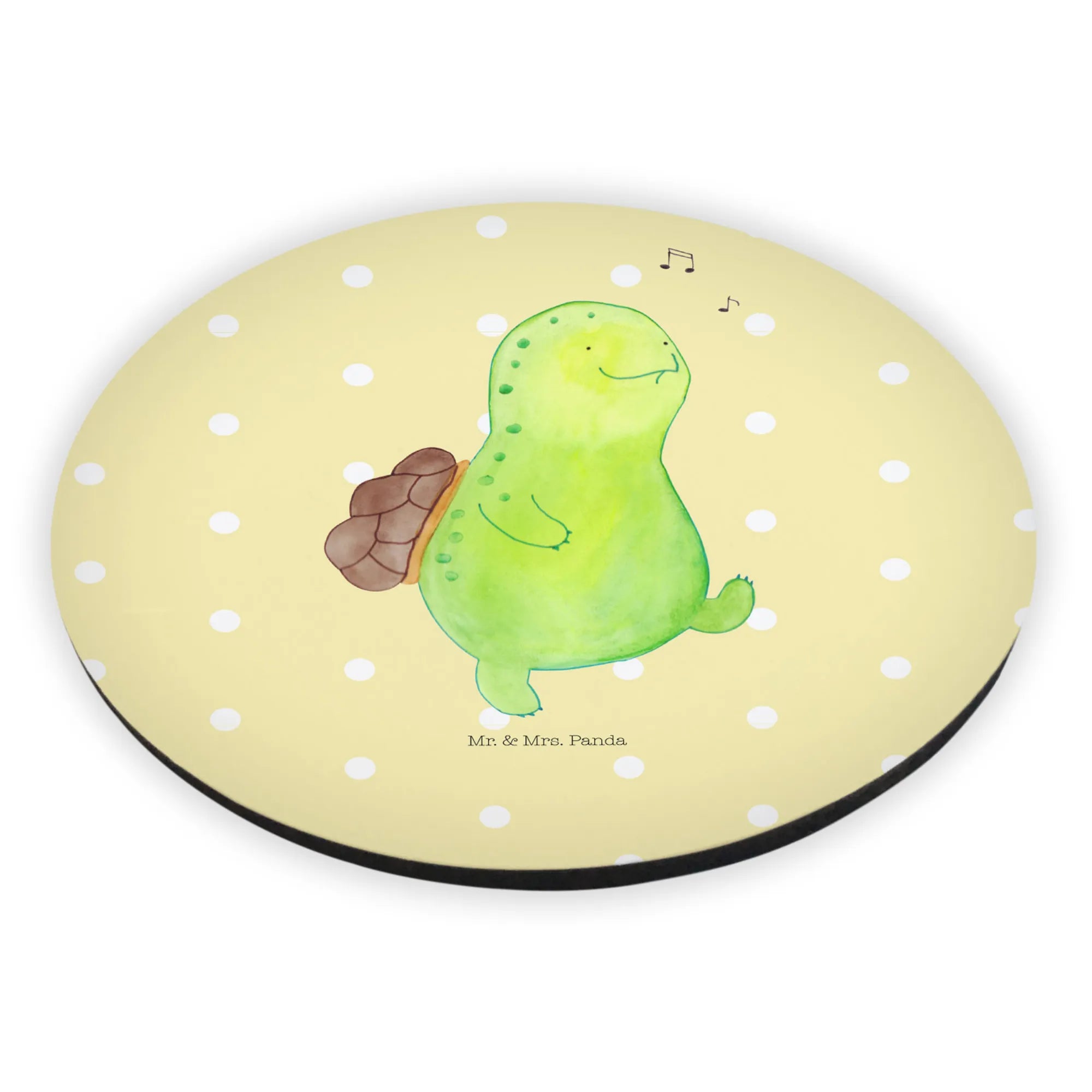 Der herrliche Rund Magnet mit der fröhlichen Schildkröte von Mr. & Mrs. Panda ist das perfekte Geschenk für alle, die ein Stück Lebensfreude in ihr Zuhause bringen möchten. Diese liebevoll designte Schildkröte, die fröhlich ein Lied pfeift, symbolisiert Optimismus und gute Laune.