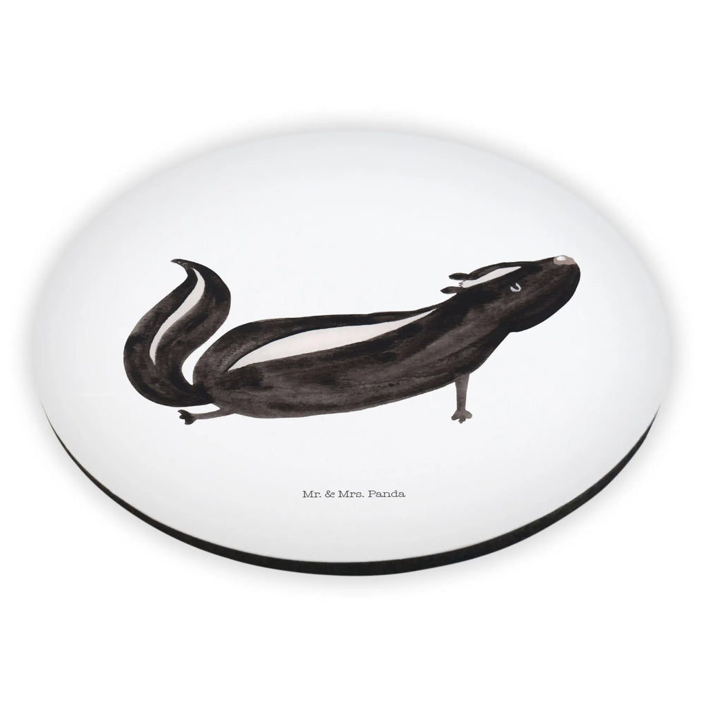 Rund Magnet Stinktier Yoga - mit Spruch - Weiß