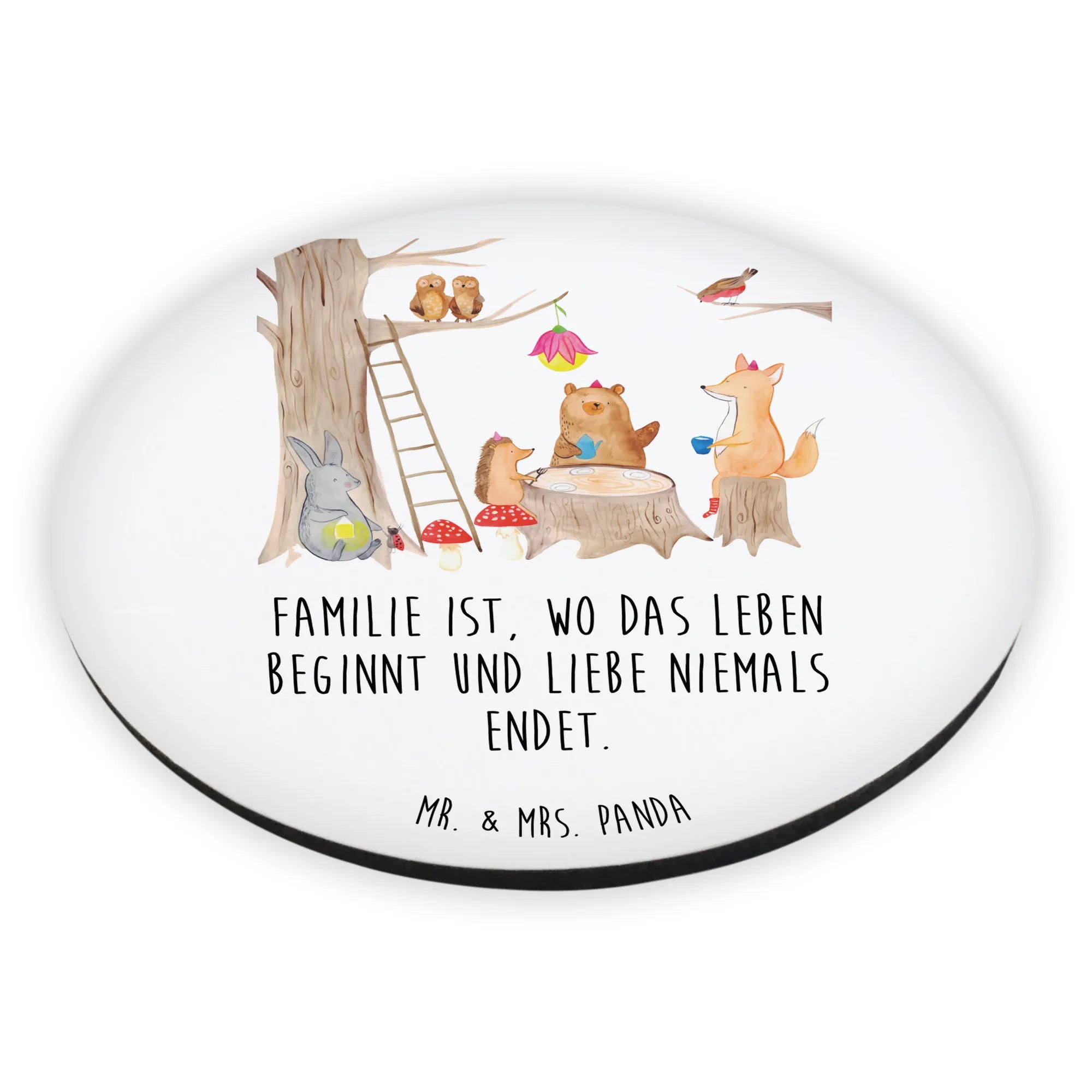 Rund Magnet Waldtiere Picknick - mit Spruch - Weiß