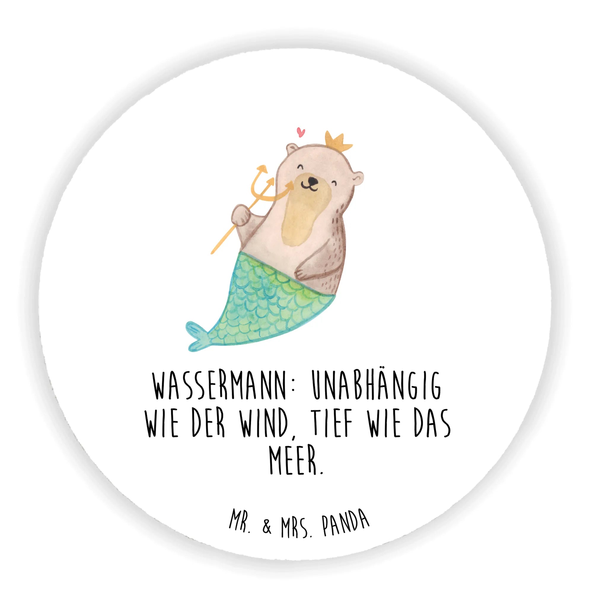 Entdecke den zauberhaften Rund Magnet Wassermann Astrologie von Mr. & Mrs. Panda. Mit einem liebevoll handgezeichneten Motiv eines charmanten Otters, der eine goldene Krone trägt und dessen Fischschwanz ihm das besondere Etwas verleiht, ist dieser Magnet ein wahrer Blickfang. Der Spruch „Wassermann: Unabhängig wie der Wind, tief wie das Meer.“ macht ihn zu einem perfekten Geschenk für alle, die das Sternzeichen Wassermann feiern.