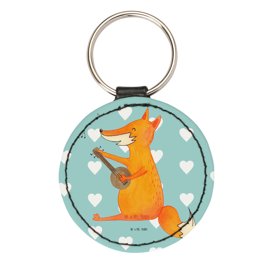Rund Schlüsselanhänger Fuchs Gitarre - Türkis Pastell