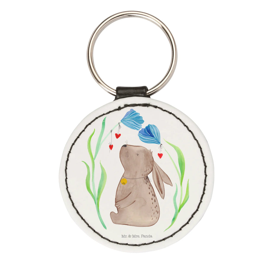 Entdecke den Rund Schlüsselanhänger Hase Blume von Mr. & Mrs. Panda – ein zauberhaftes Accessoire, das nicht nur deinen Schlüsselbund verschönert, sondern auch als perfekter Glücksbringer und Schutzengel fungiert!