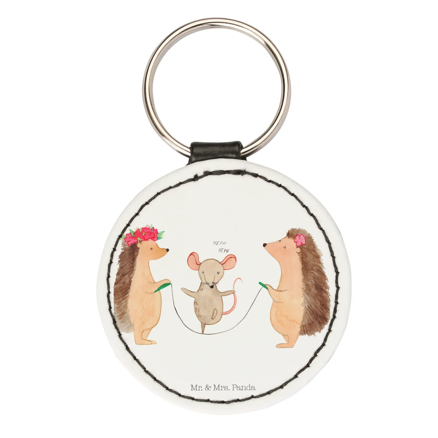 Rund Schlüsselanhänger Igel Seilhüpfen - Weiß