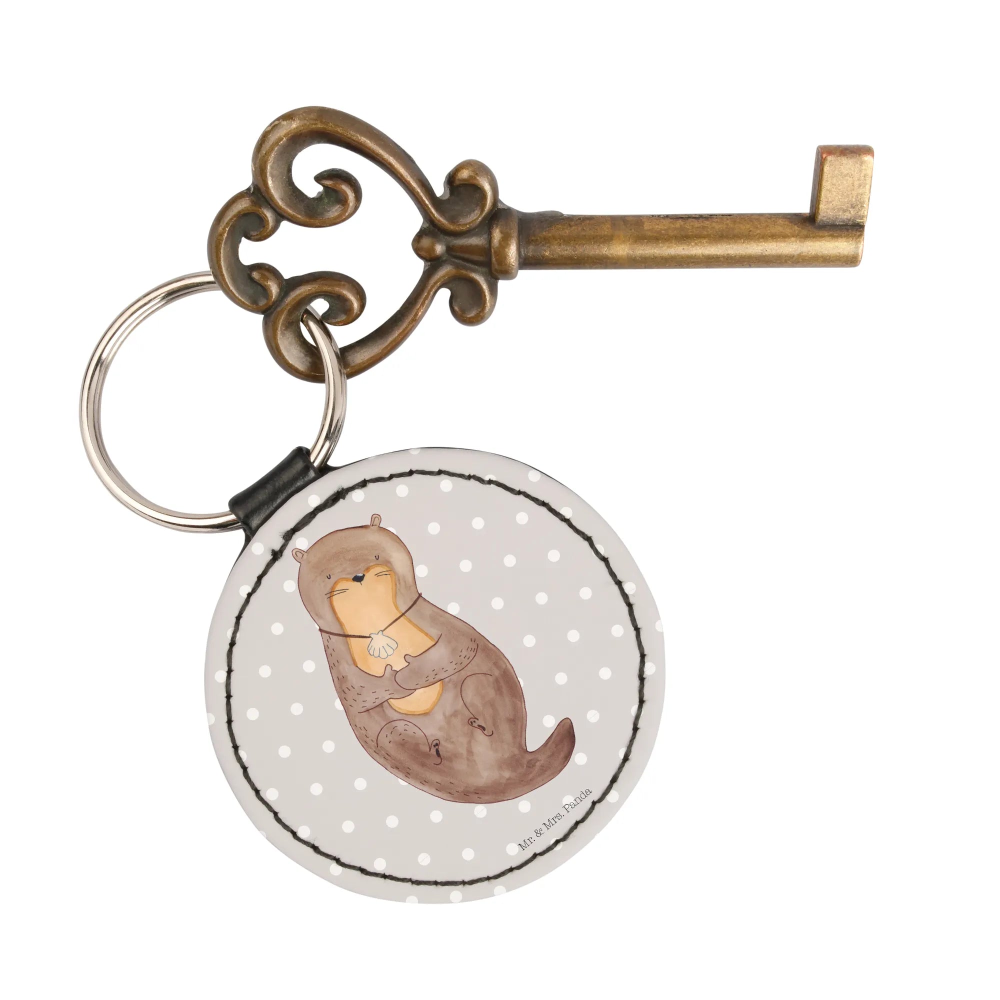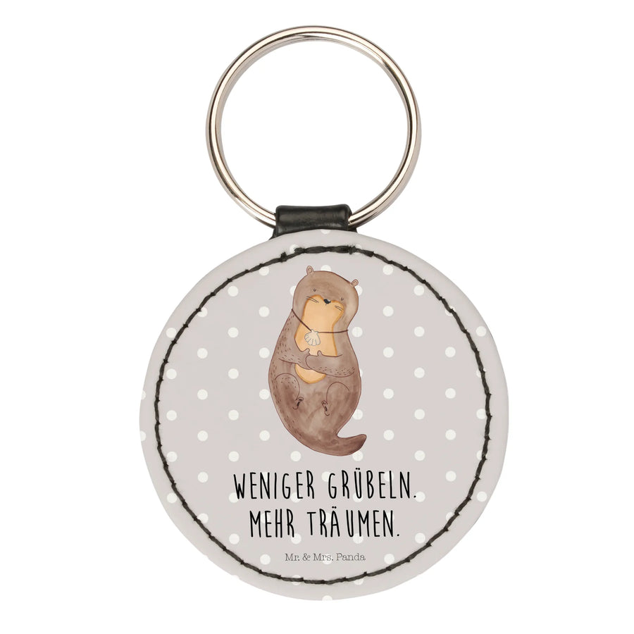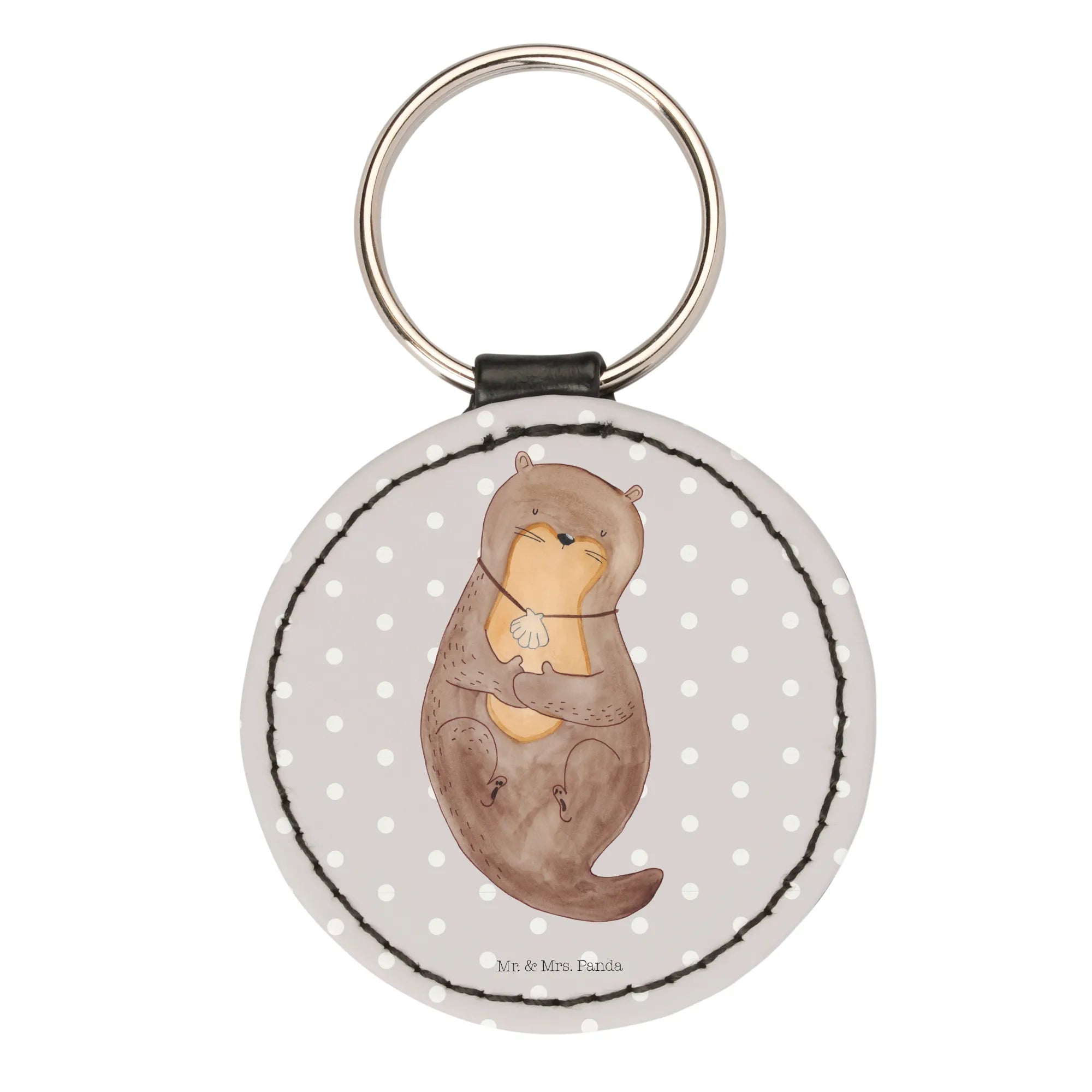 Rund Schlüsselanhänger Otter Muschel - mit Spruch - Grau Pastell