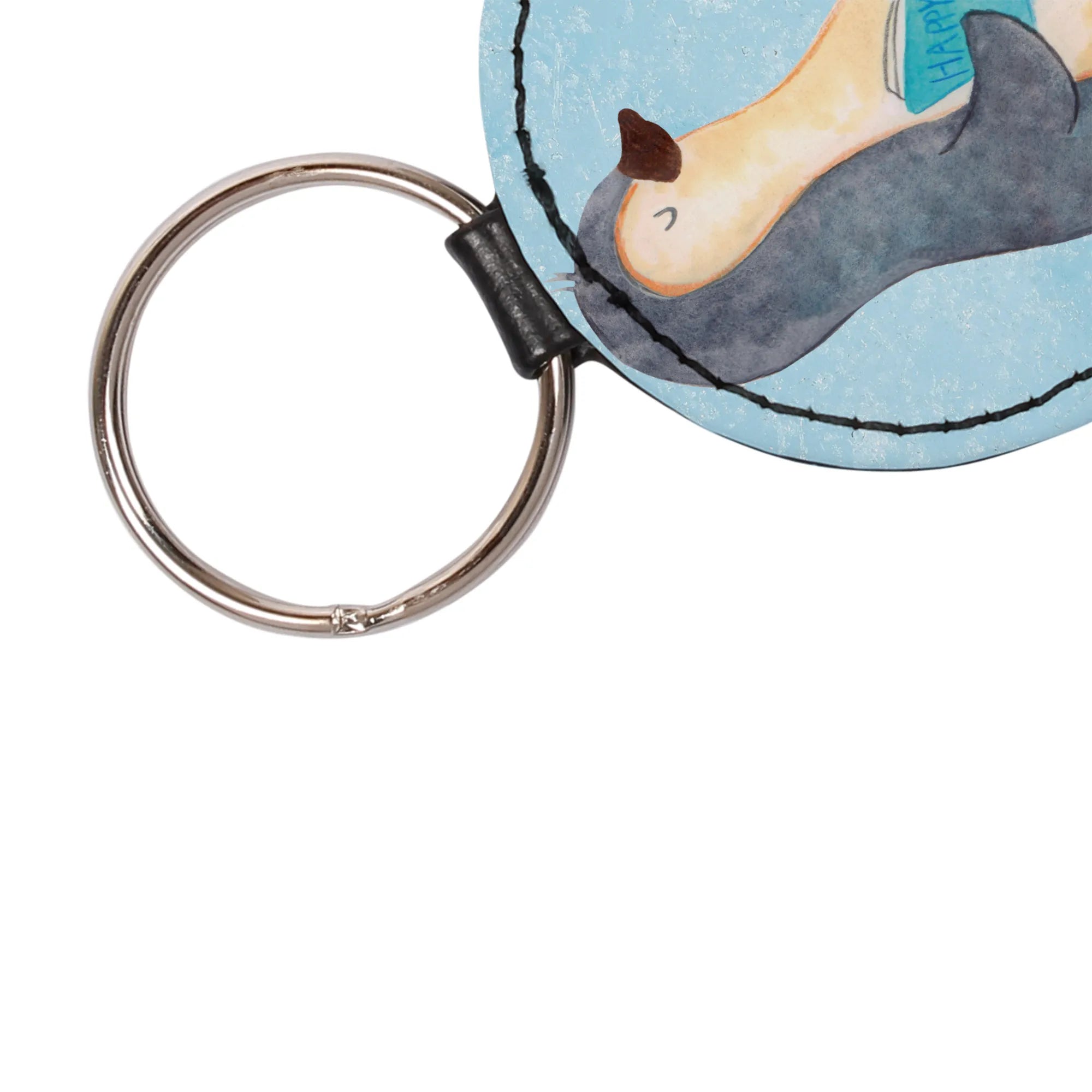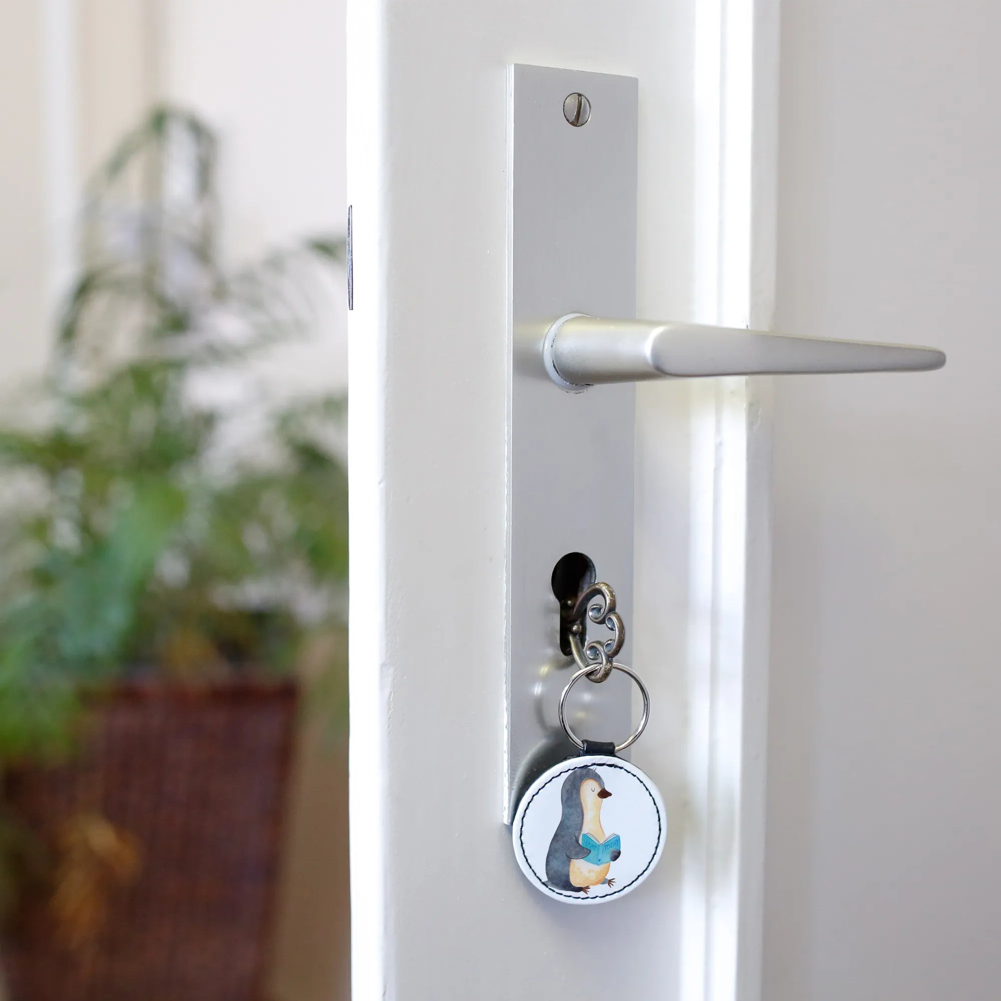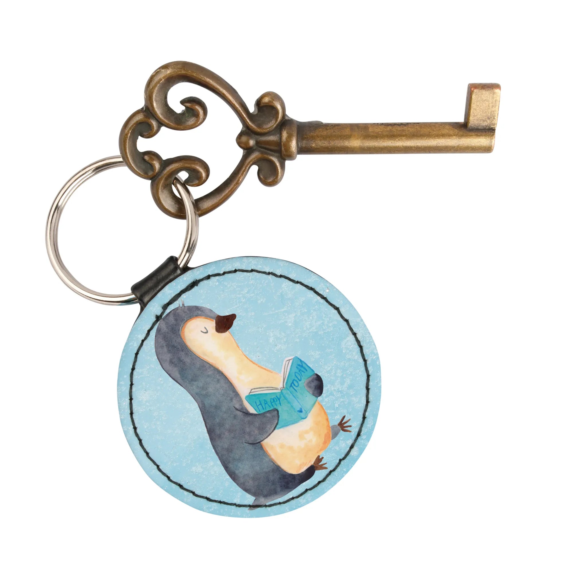 Rund Schlüsselanhänger Pinguin Buch - Eisblau