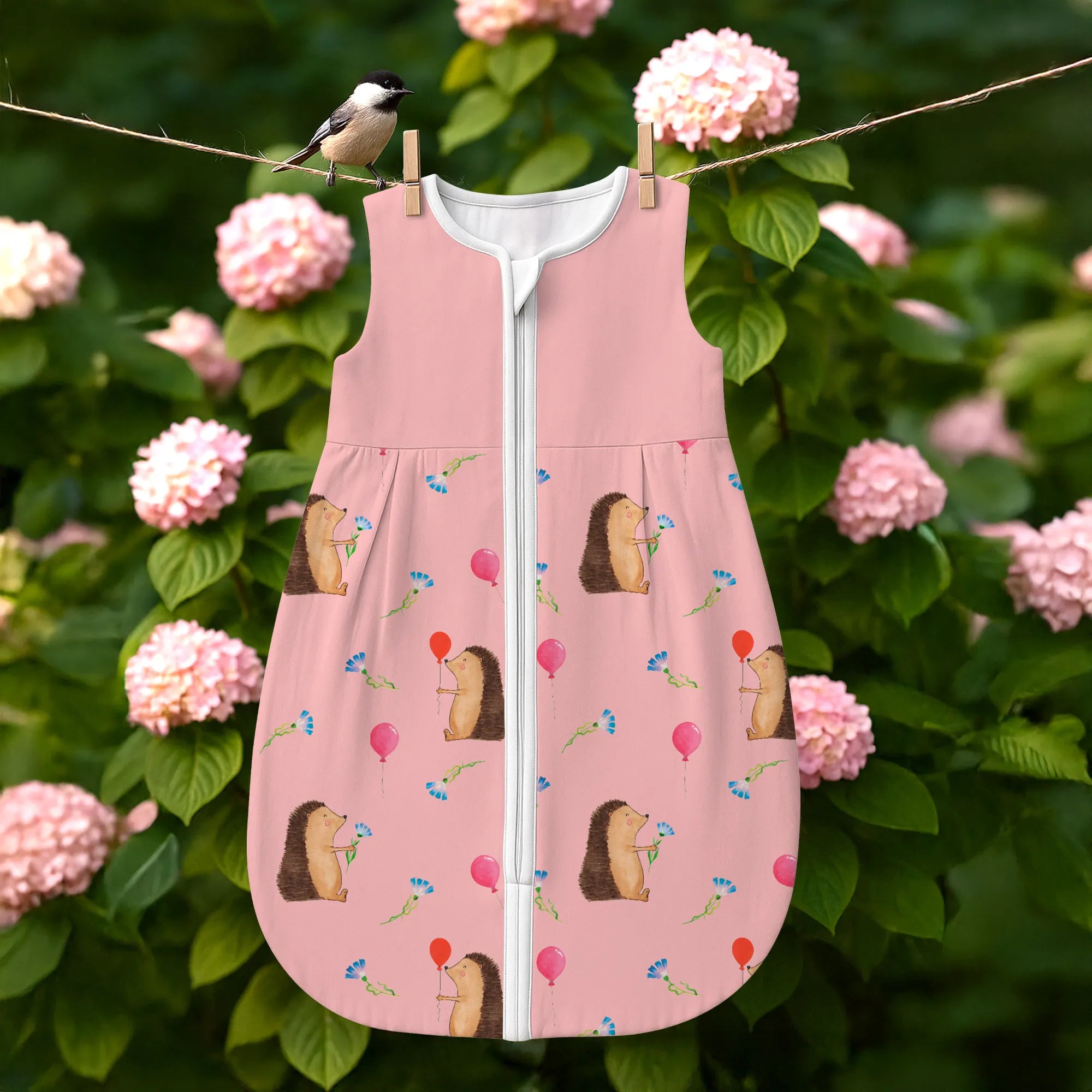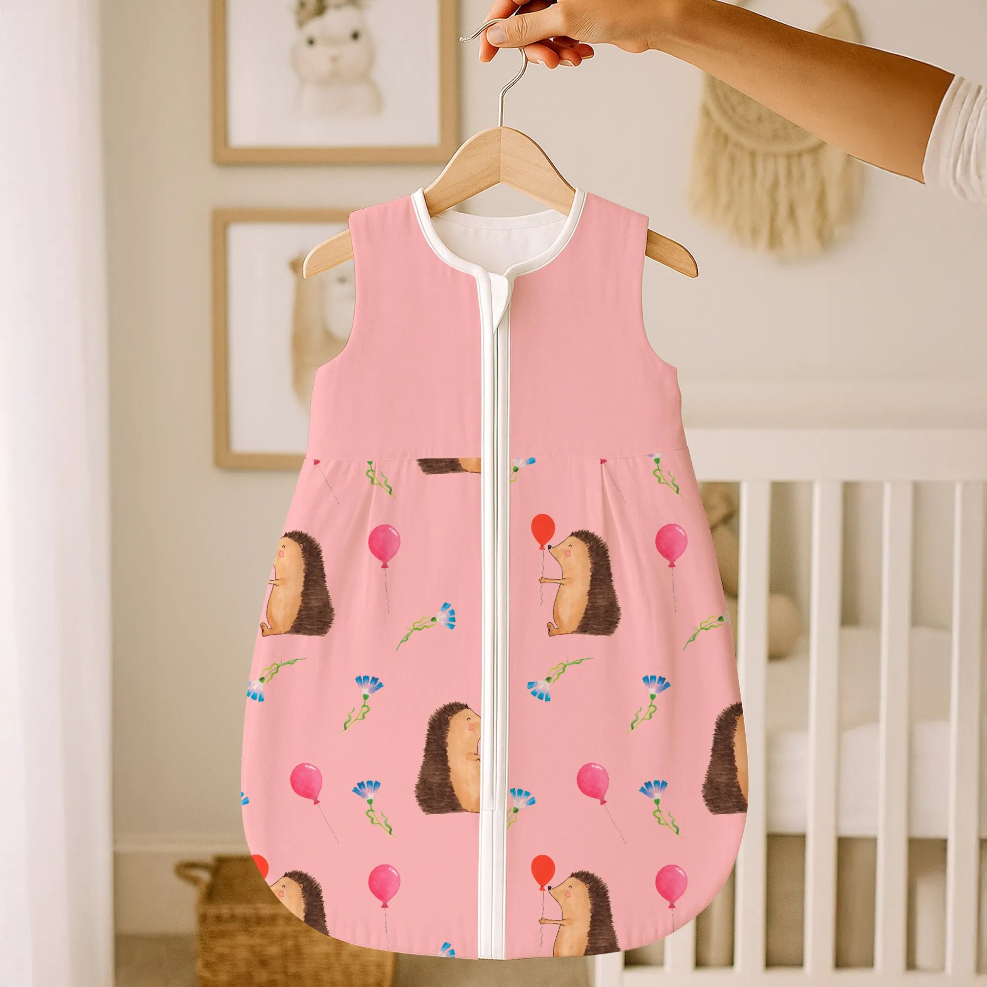 Mach das nächste Geschenk unvergesslich: Ein Babyschlafsack mit Igel und Luftballon als liebevolles Symbol für fröhliche Geburtstage, kleine Abenteuer und sichere Nachtruhe.