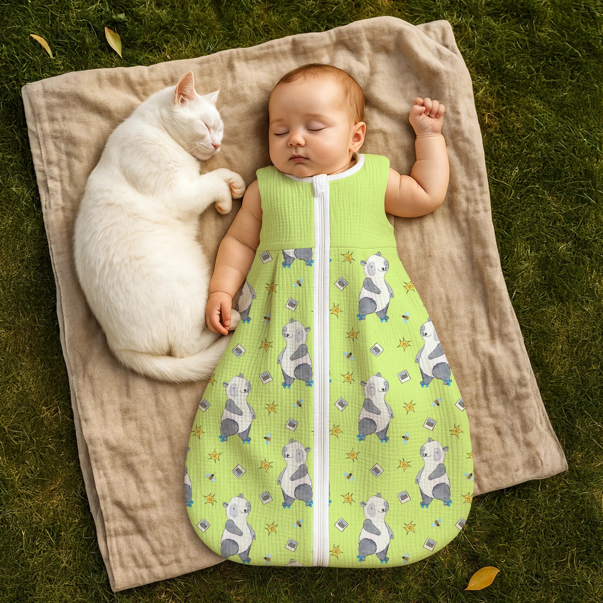 🐼 KUSCHEL SCHLAFSACK: Handgefertigt, Baumwolle, niedliche Motive und Reißverschluss für schnelles Wickeln.