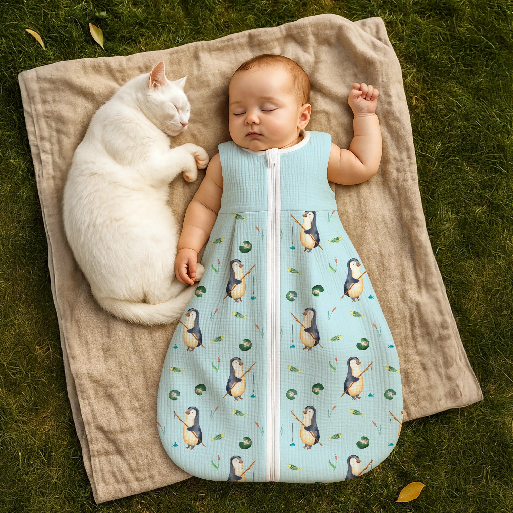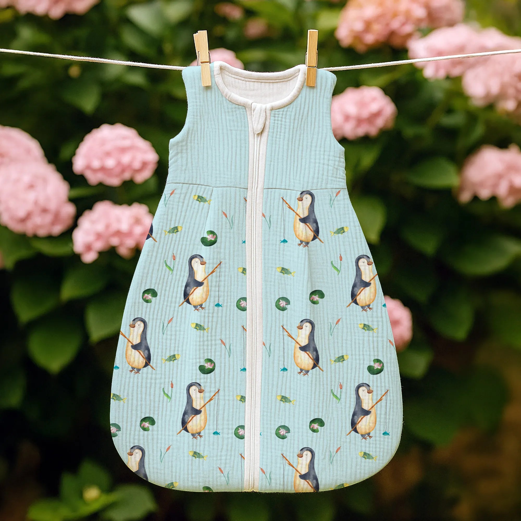 Ein Schlafsack Baby von Mr. & Mrs. Panda ist weit mehr als nur ein einfaches Kleidungsstück für die Nacht. Es ist eine liebevolle Umarmung, die dein Kind sanft in das Land der Träume begleitet. Unser Babyschlafsack mit dem entzückenden Pinguin Angler Motiv aus der exklusiven Pinguin-Kollektion ist das perfekte Beispiel für diese Geborgenheit. 🐧🎣