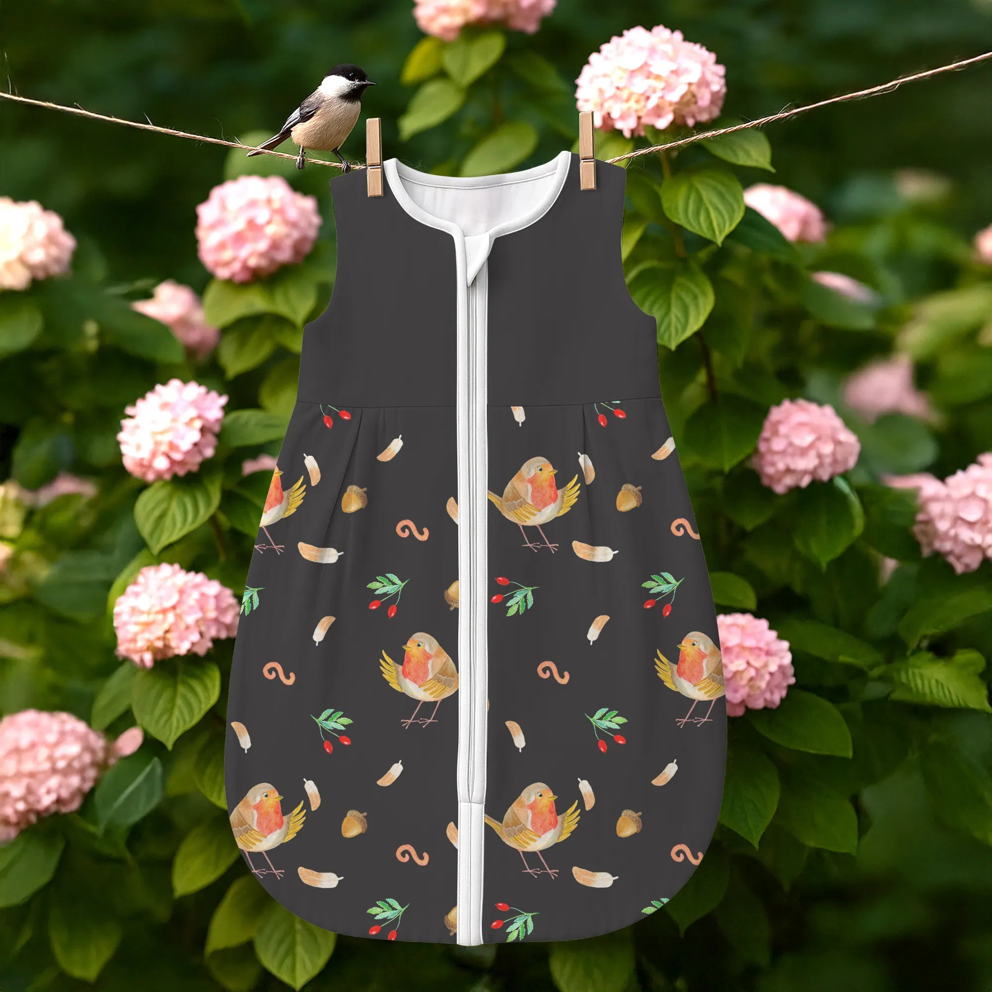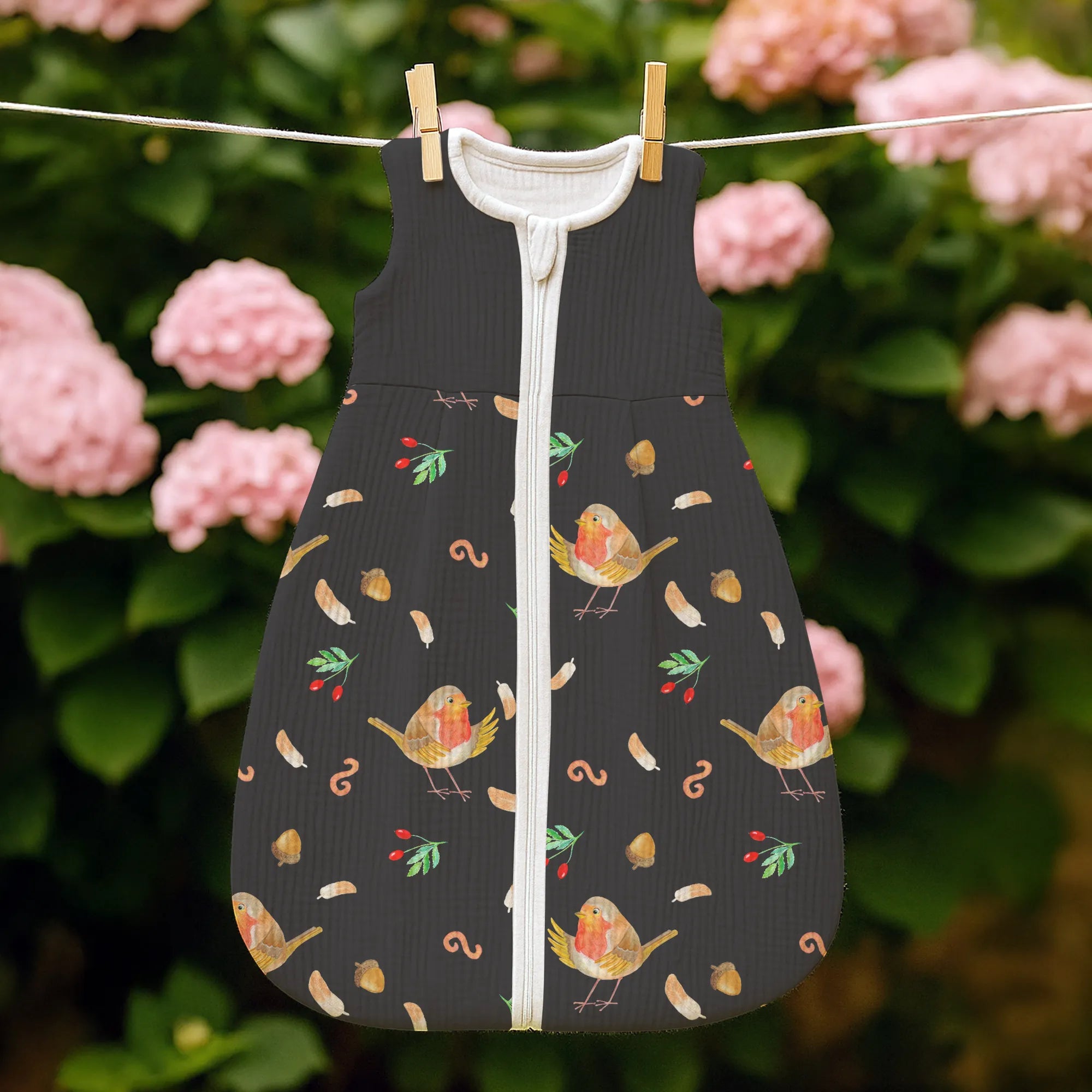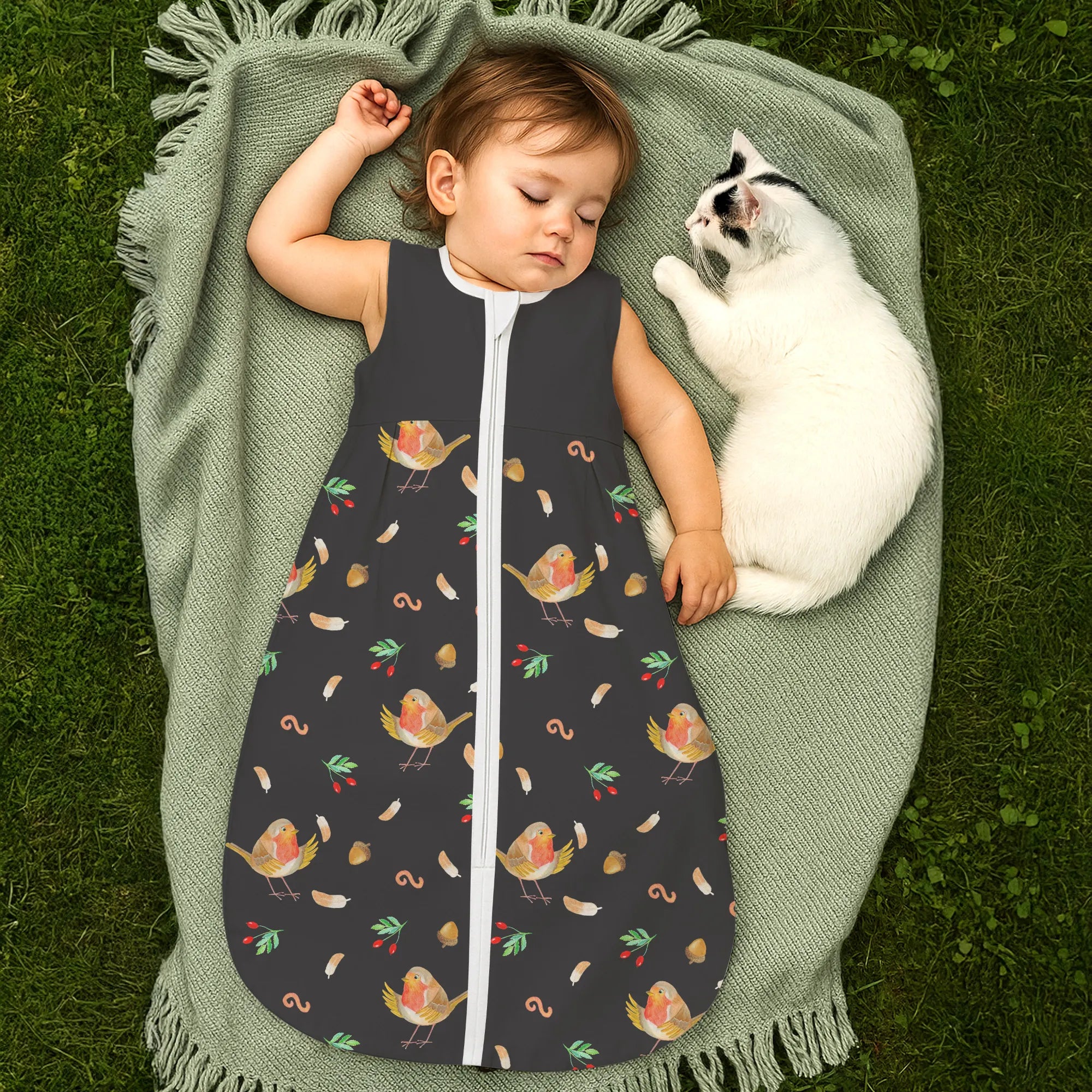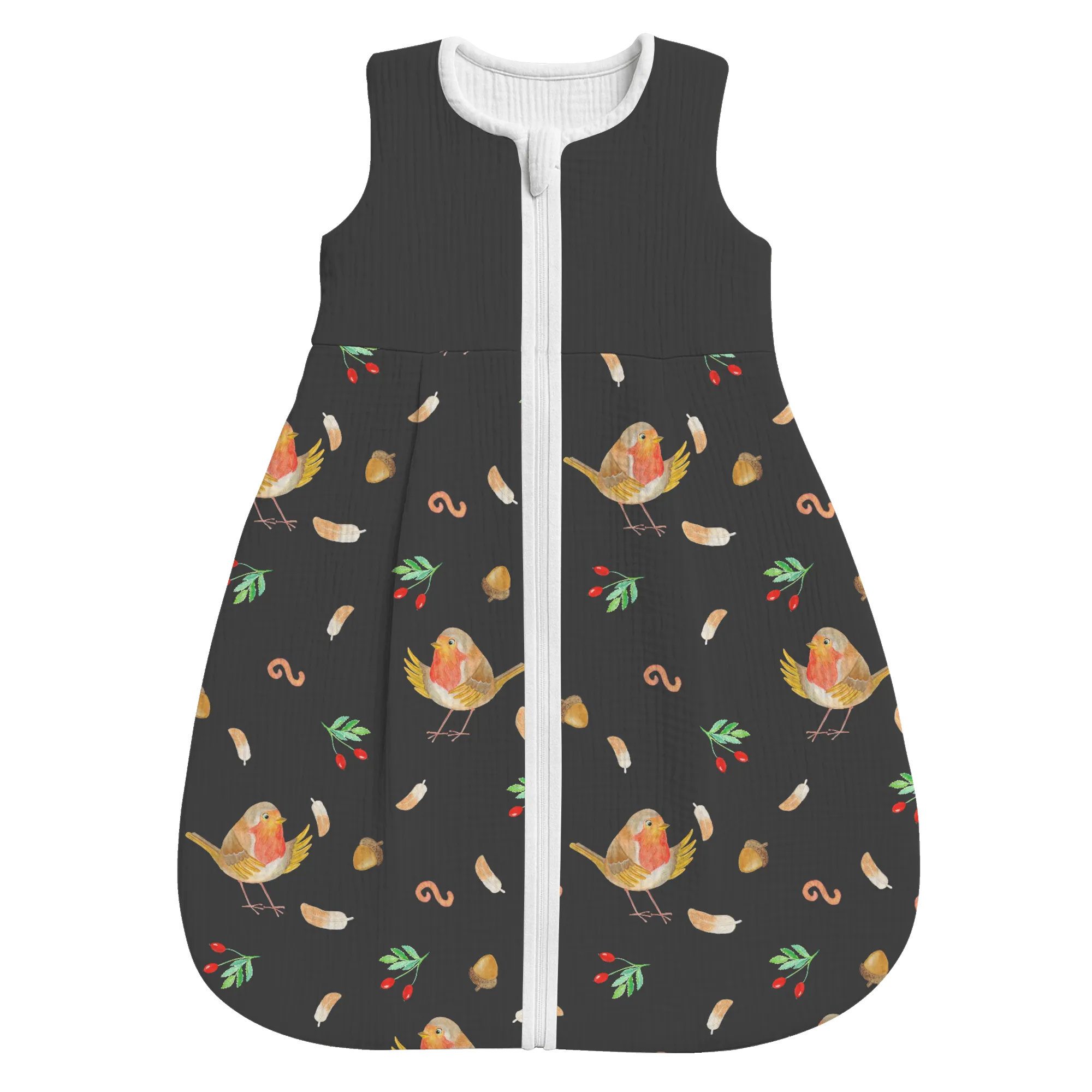 Zauberhafter Babyschlafsack – Rotkehlchen mit Federn