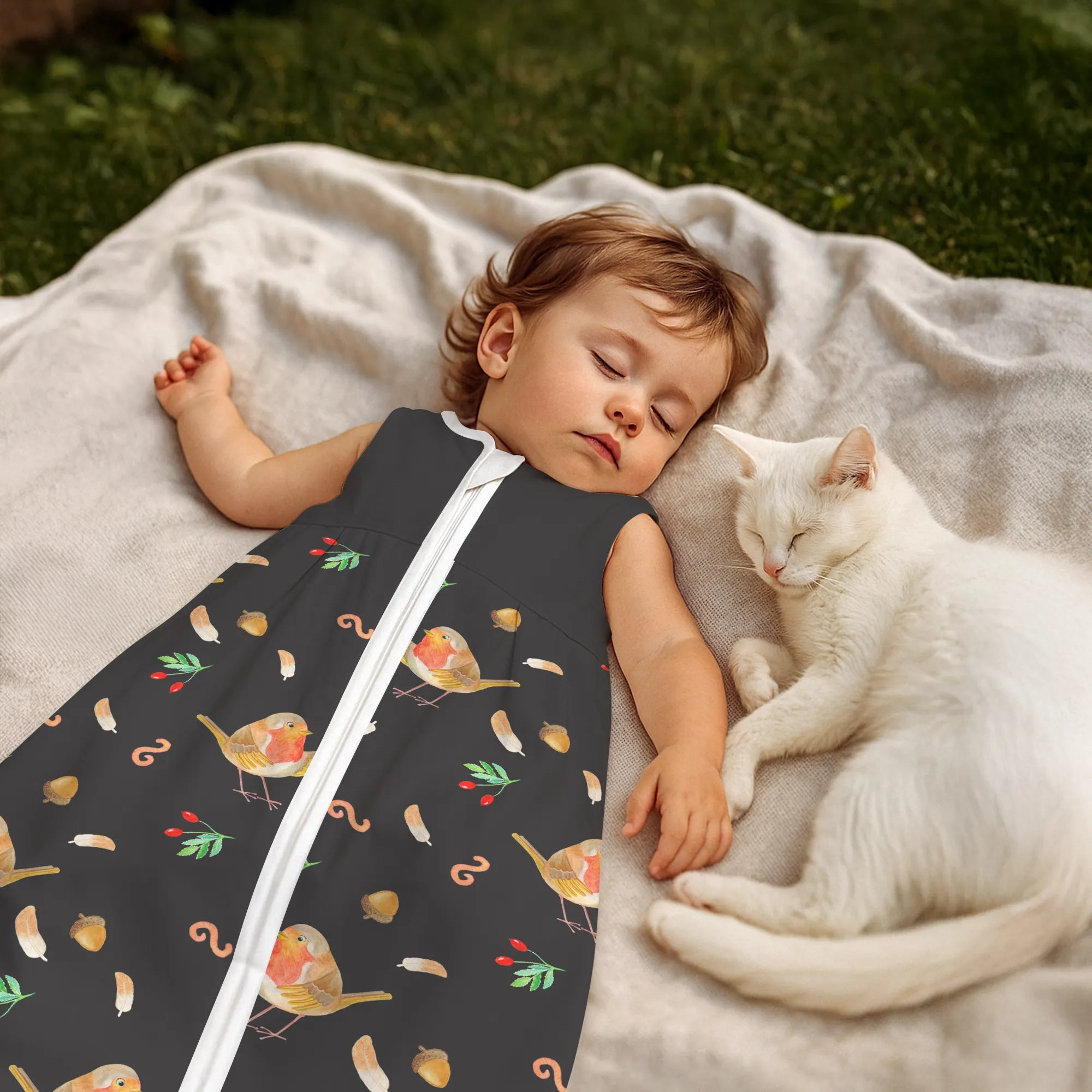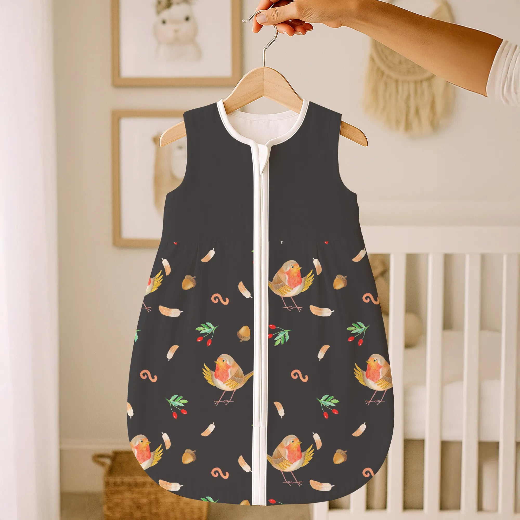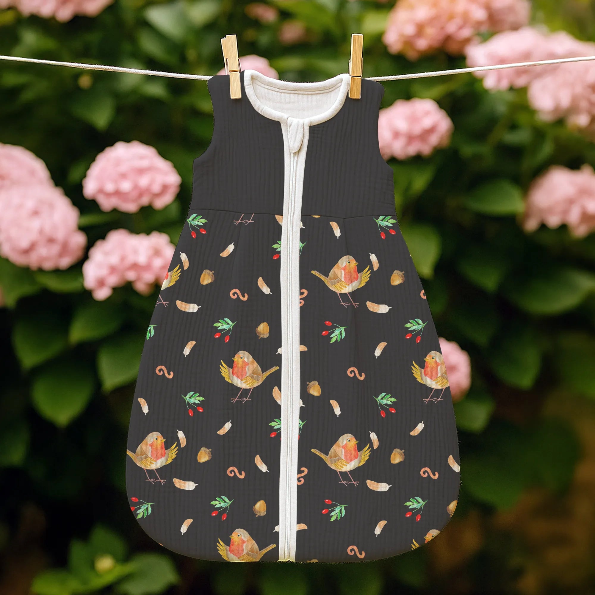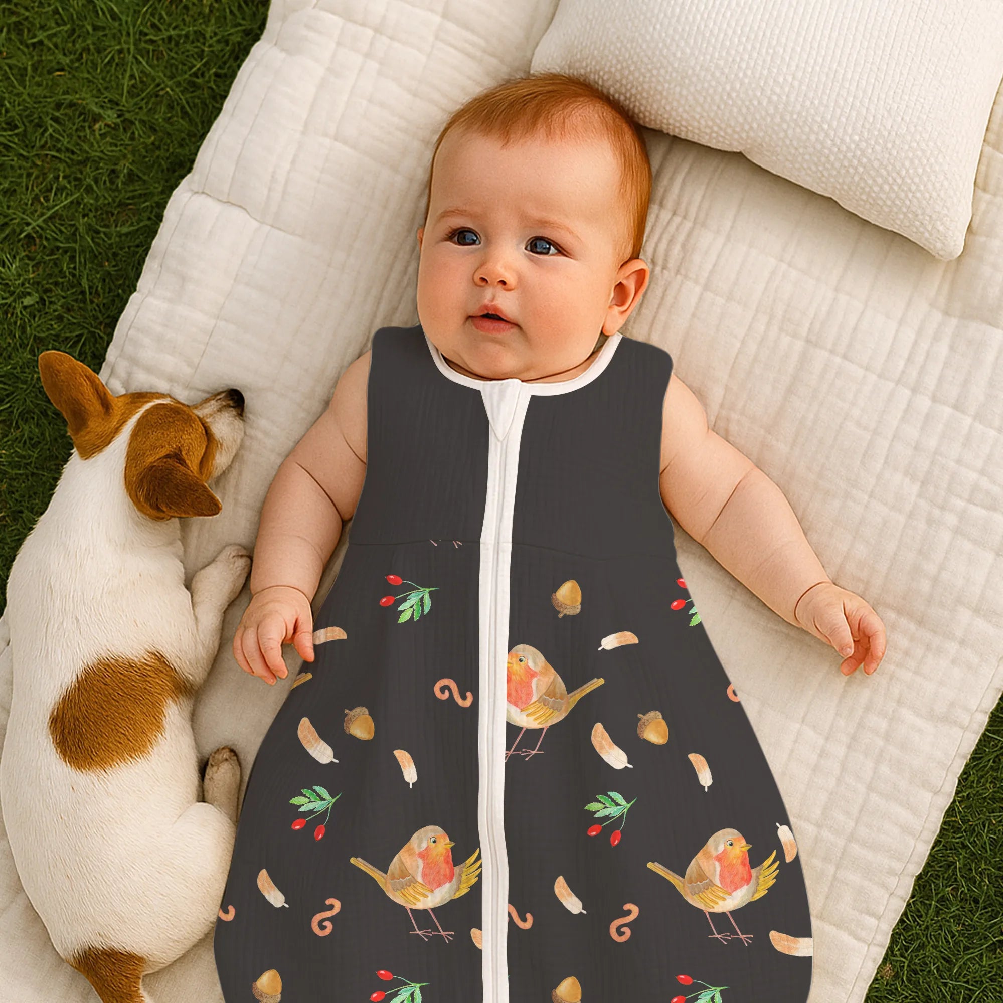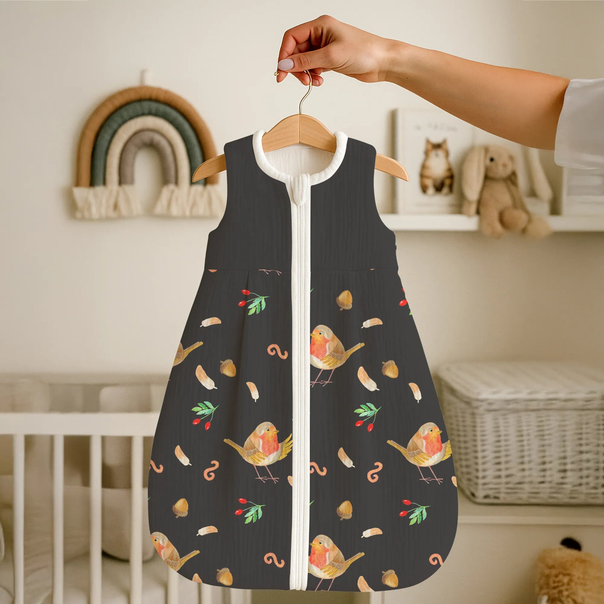 Zauberhafter Babyschlafsack – Rotkehlchen mit Federn
