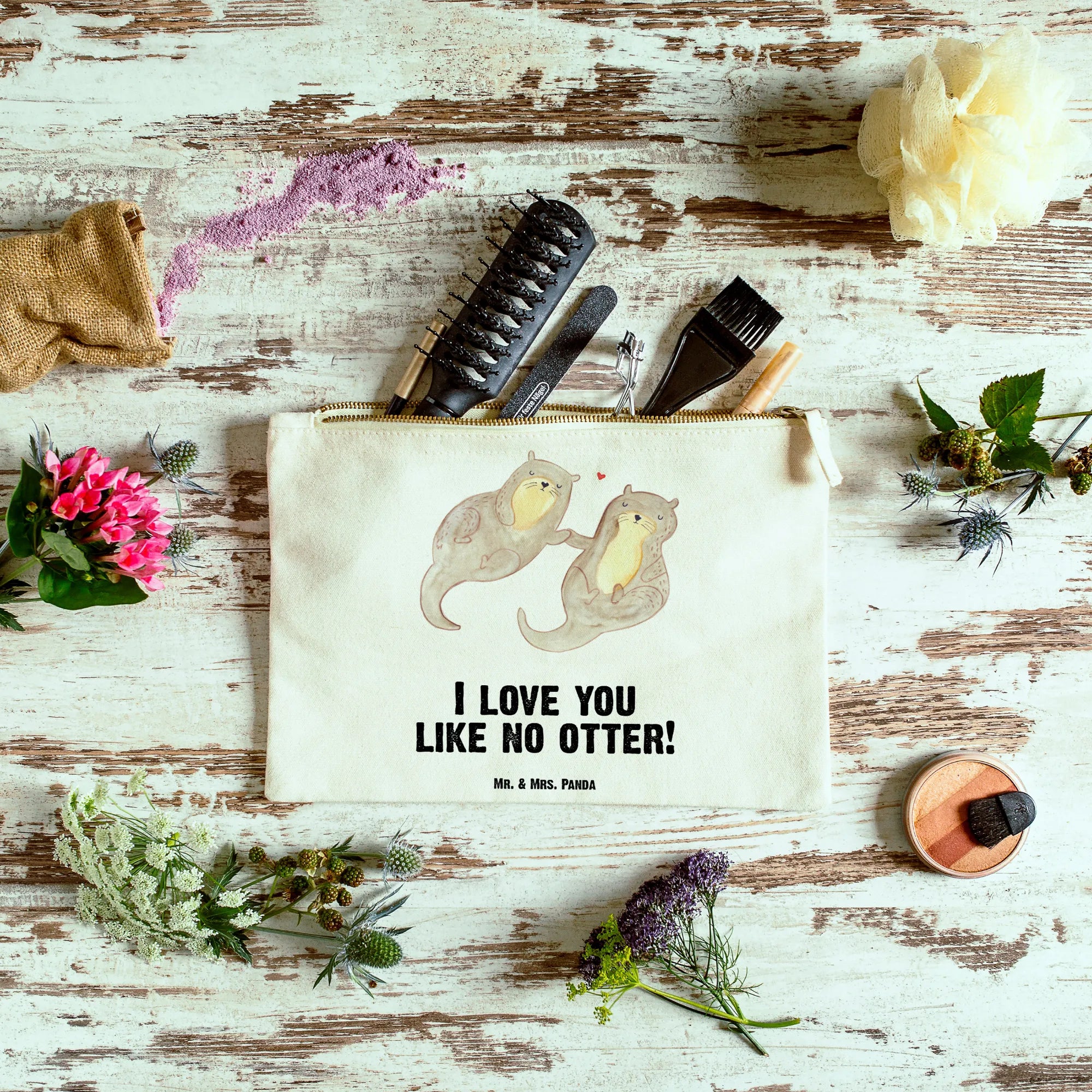Mr. & Mrs. Panda Liebeserklärung mit Ottern - Wunderschönes 'I love you like no otter!' Motiv