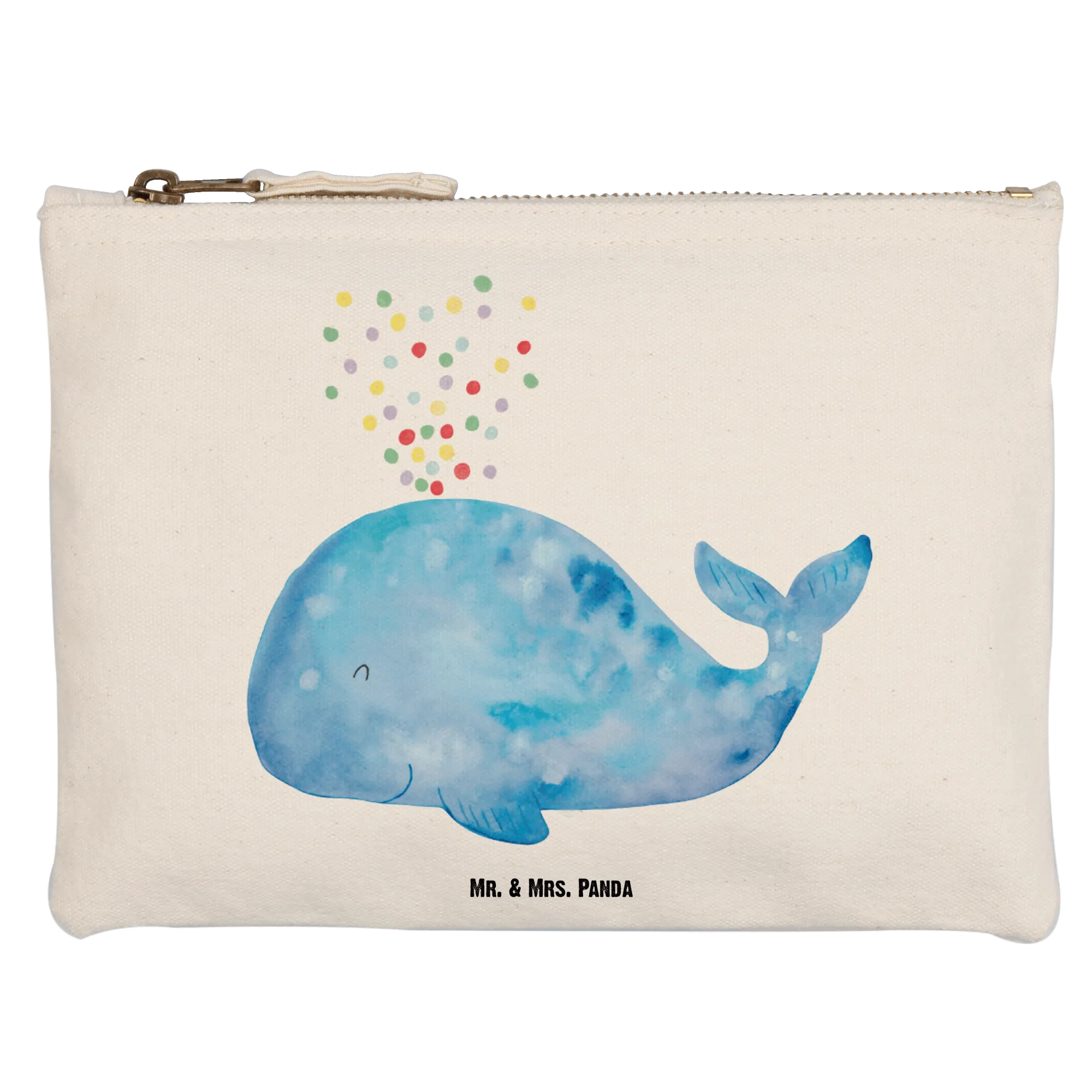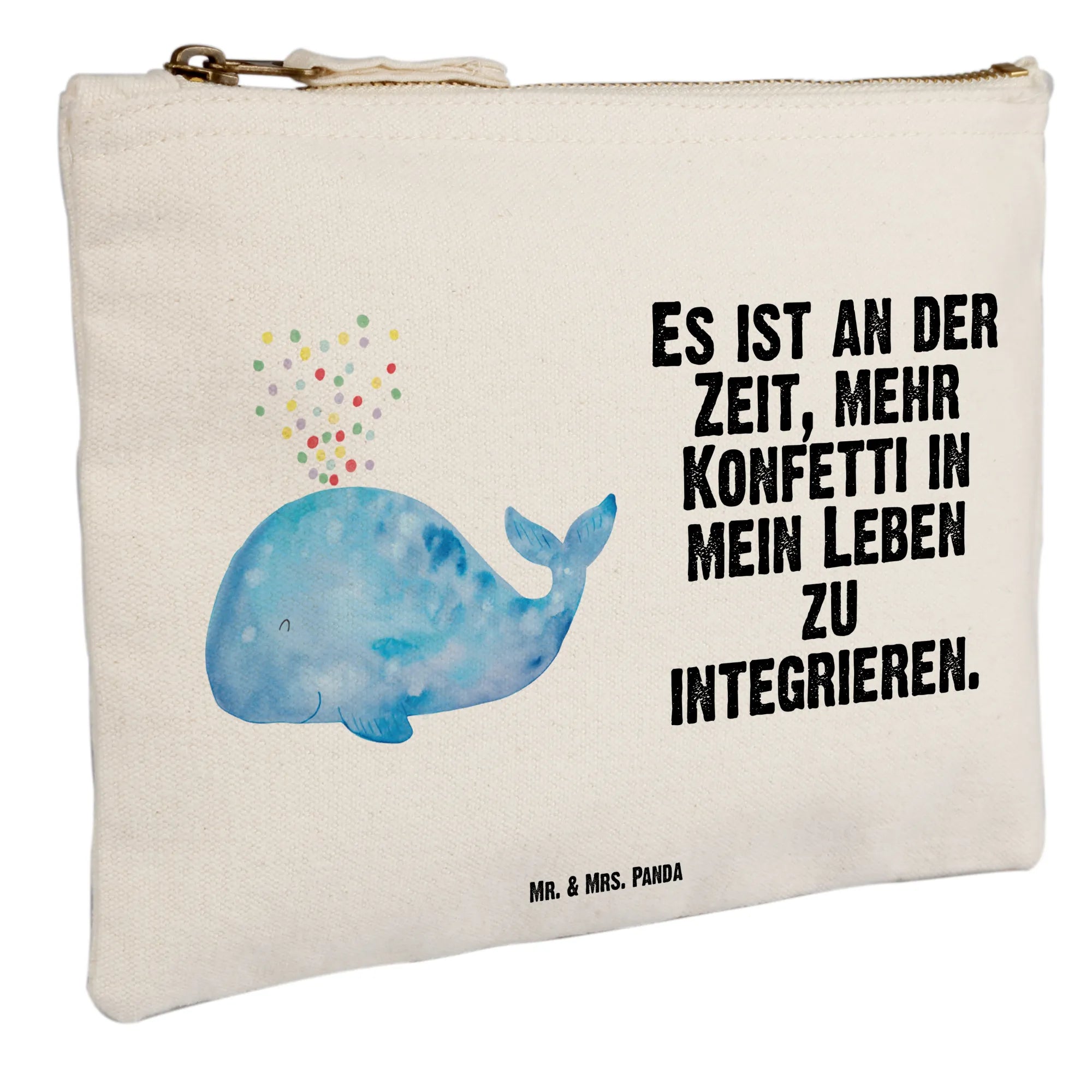Du suchst das perfekte Geschenk für einen besonderen Anlass? Dann ist die Schminktasche mit dem niedlichen Wal Konfetti-Motiv aus der Meerestiere Kollektion von Mr. & Mrs. Panda genau das Richtige für Dich!