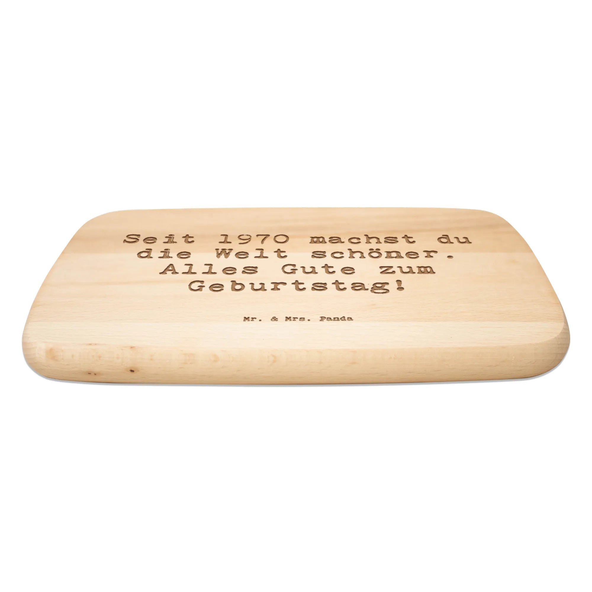 Suchst du ein Geschenk, das praktisch, schön und persönlich ist? Unser Frühstücksbrett 1970 aus der Geburtstag Geburtsjahr-Kollektion von Mr. & Mrs. Panda verbindet genau diese Eigenschaften. Der liebevolle Spruch „Seit 1970 machst du die Welt schöner. Alles Gute zum Geburtstag!" ist dauerhaft per Lasergravur aufgebracht und zaubert ein Lächeln bei jedem Frühstück.