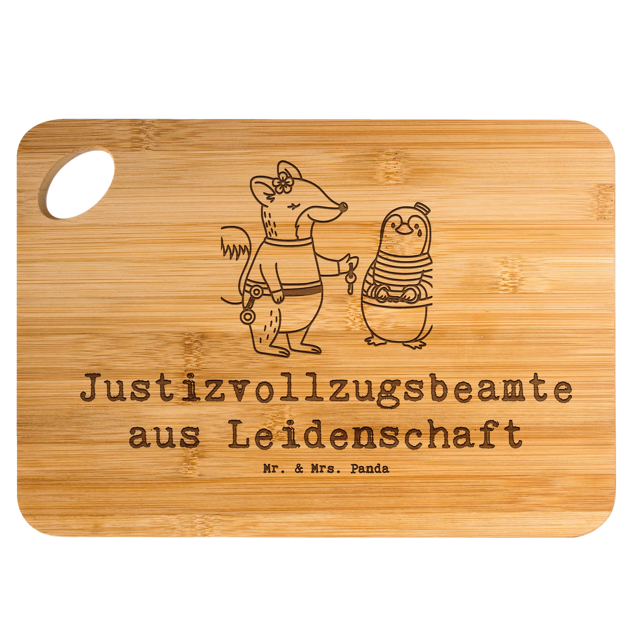 Mr. & Mrs. Panda Schneidebrett „Justizvollzugsbeamte aus Leidenschaft" – ein liebevoll gestaltetes Frühstücksbrett und Holzbrett für alle, die ihren Beruf mit Herz und Humor leben. Das Motiv zeigt eine süße, weibliche Justizvollzugsbeamtin als Fuchs, der augenzwinkernd einen Pinguin in Handschellen legt. Der Slogan „Justizvollzugsbeamte aus Leidenschaft" ist dauerhaft lasergraviert und macht dieses Küchenbrett zu einem persönlichen Geschenk für den Arbeitsalltag oder das gemütliche Frühstück zu Hause. 🎁