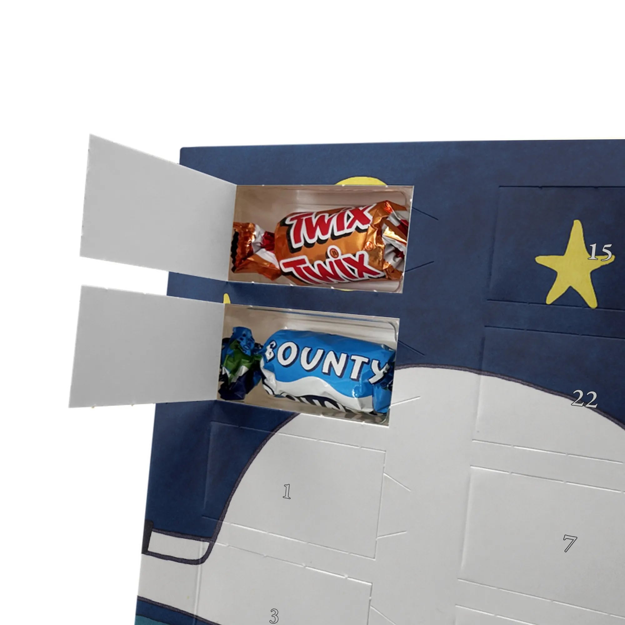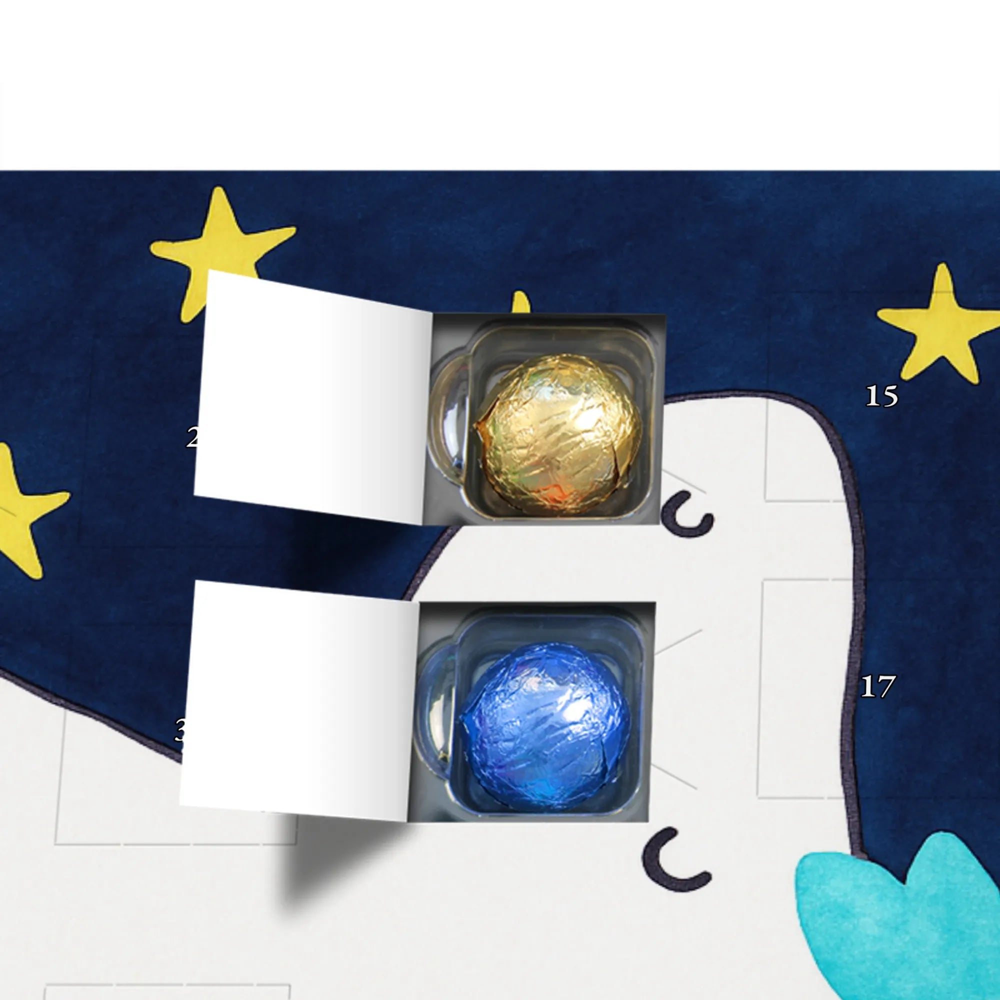🐼 Schoko-Adventskalender: Liebevolles Design, seidenmatt, brillanter Druck – ein Hingucker.